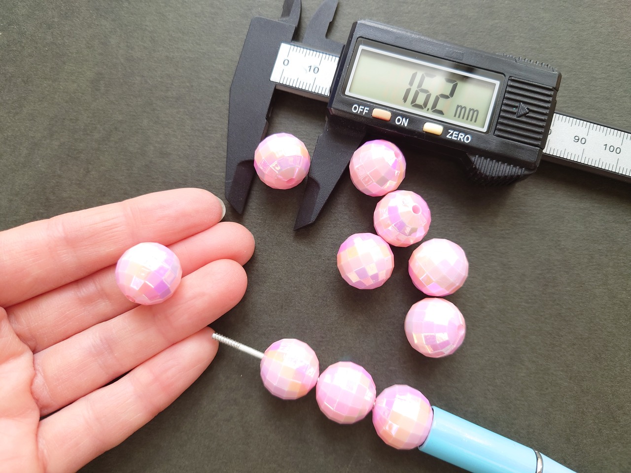 【値下げ在庫限り】樹脂 多面カット オーロラ ピンク ビーズ 16mm 大ぶり ミラーボール 2個