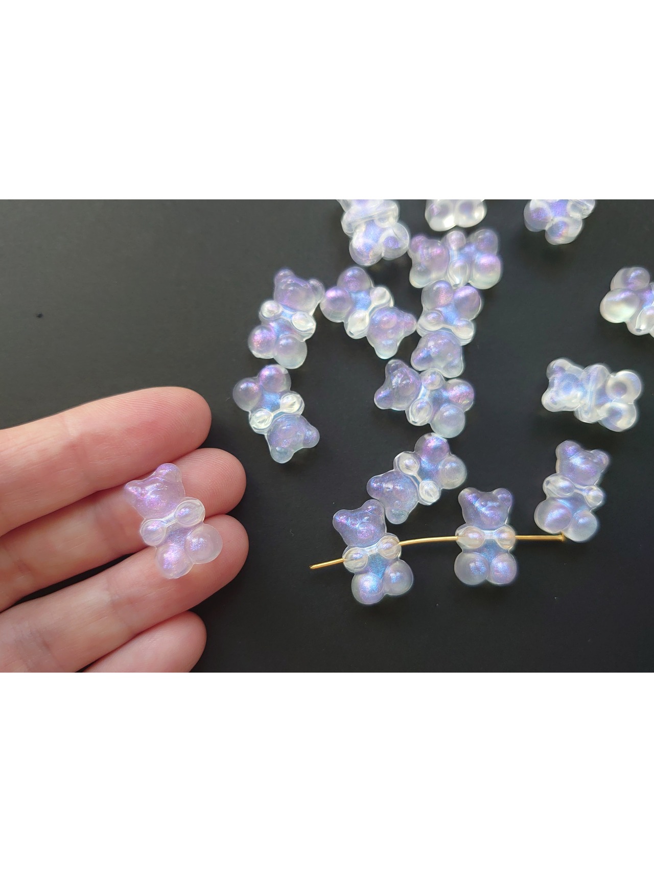 【値下げ在庫限り】アクリル オーロラ グリッター ラメ クマ ビーズ ホワイト 横穴 10個