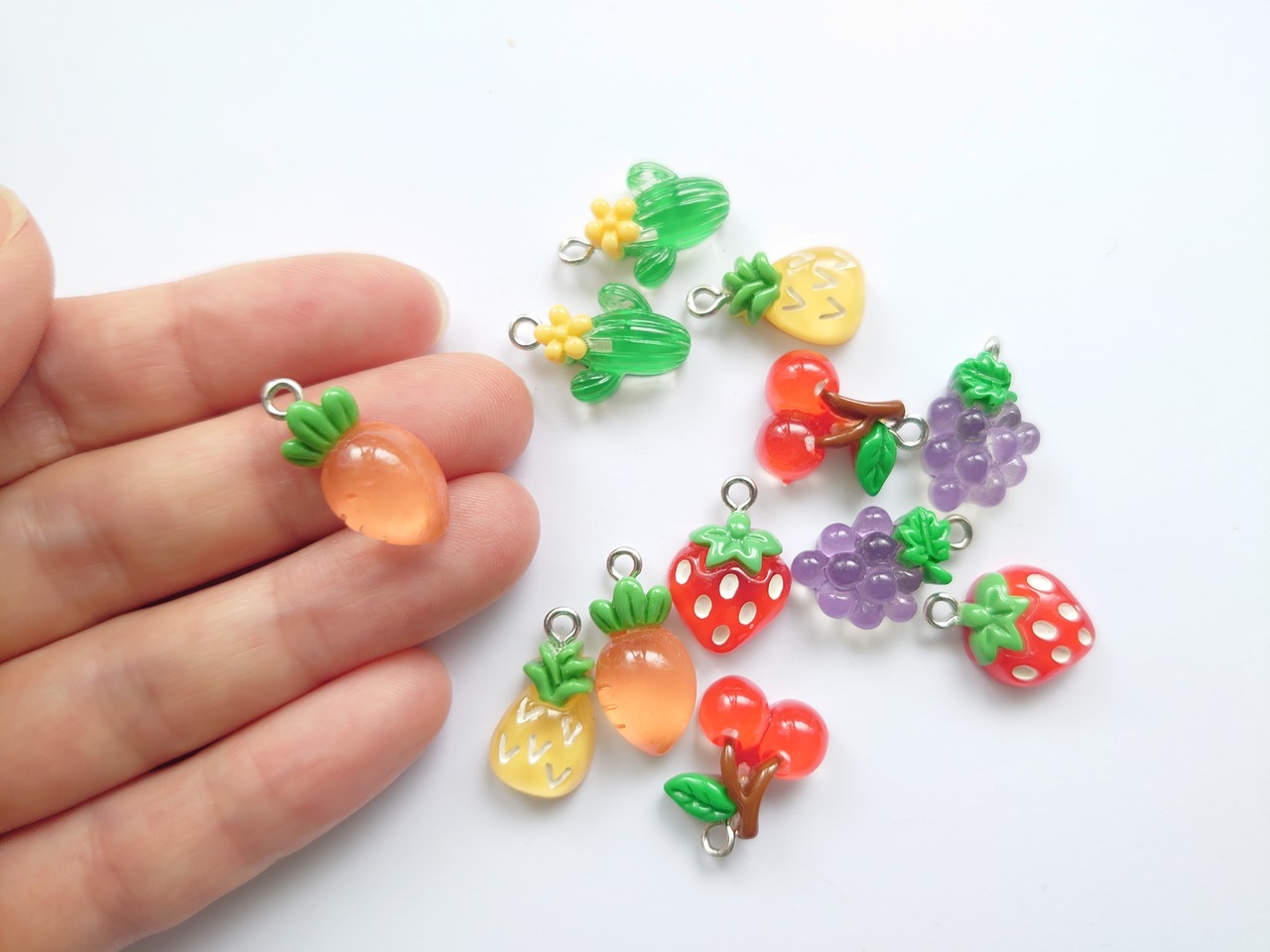 2個【値下げ在庫限り】アクリル チャーム デザイン ミックス サボテン ニンジン イチゴ サクランボ パイナップル ブドウ