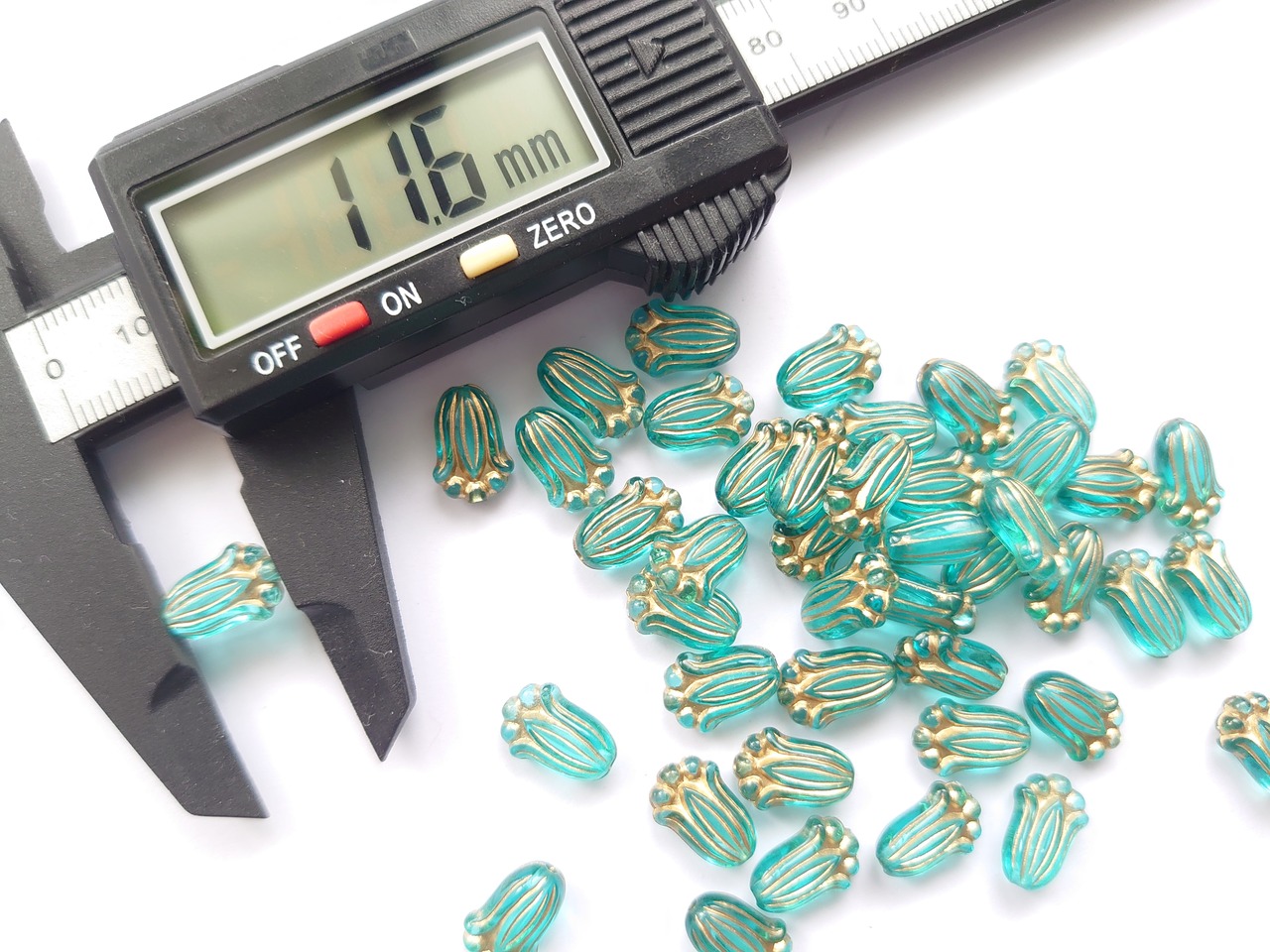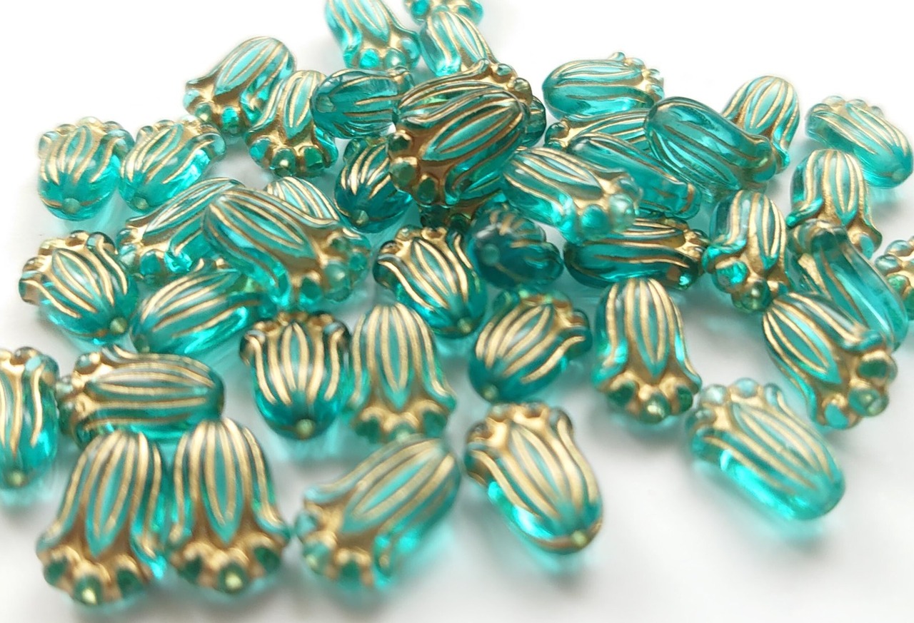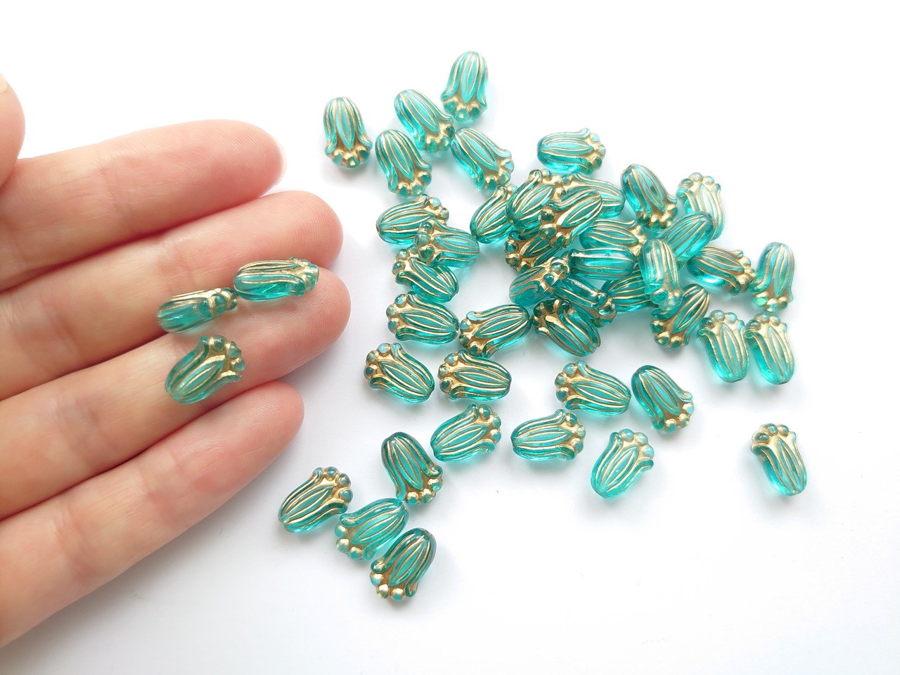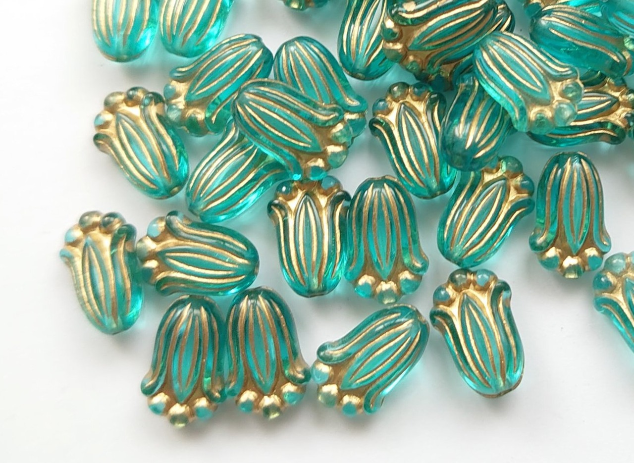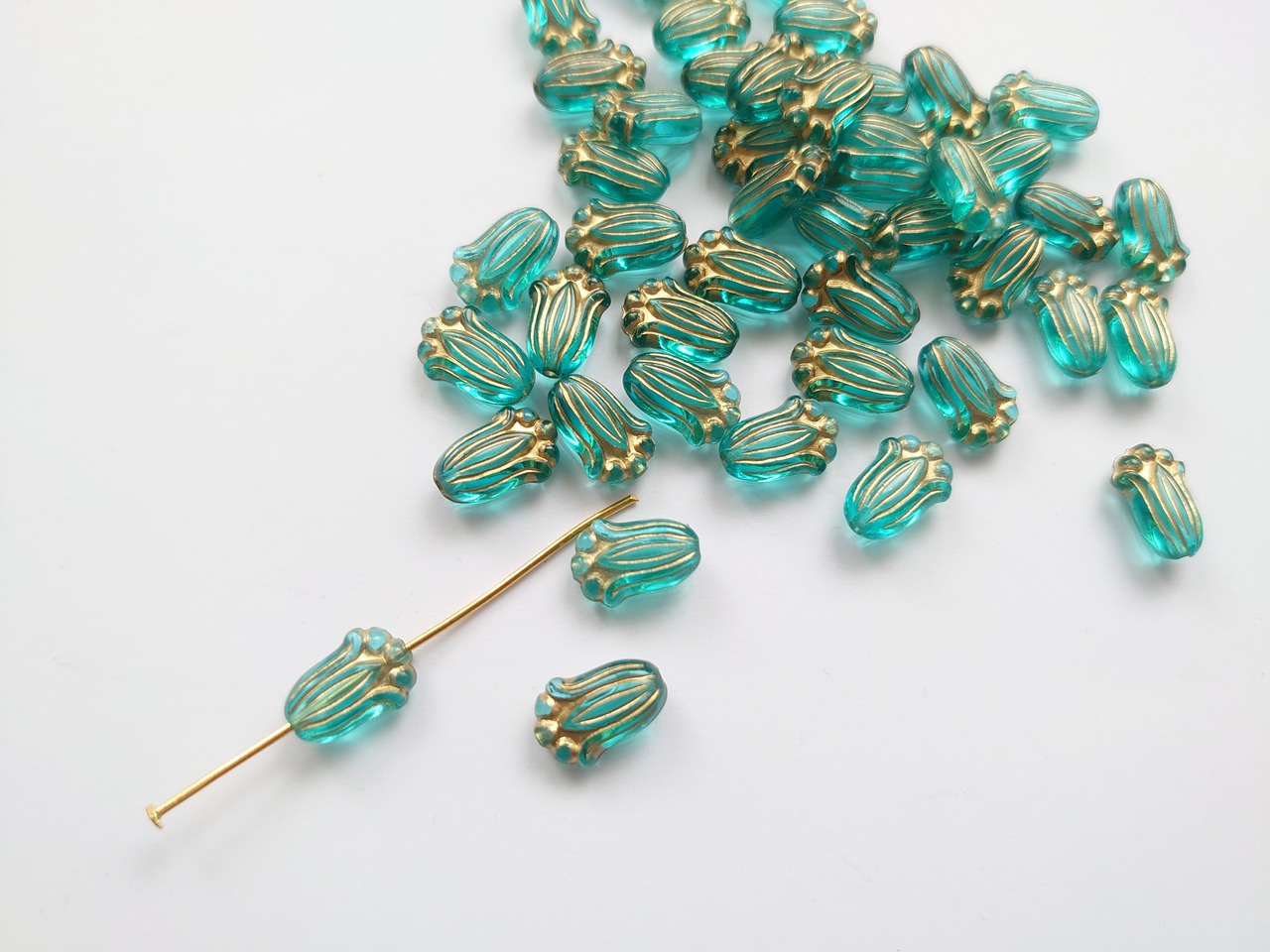 8個セット アクリル ゴールドライン フラワー ブルーグリーン
