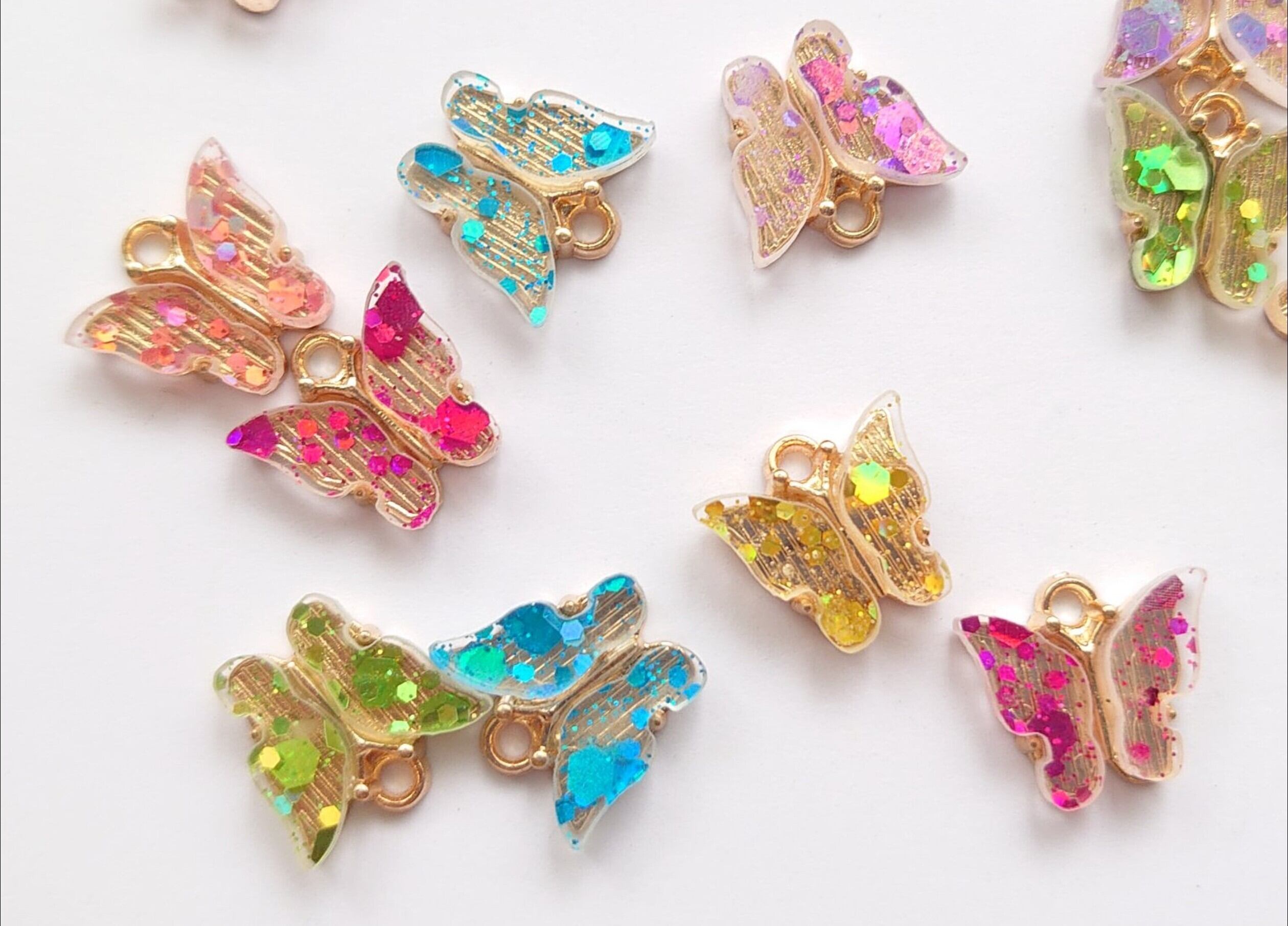 合金 アクリルクリア ラメ 蝶々チャーム ミックスカラー