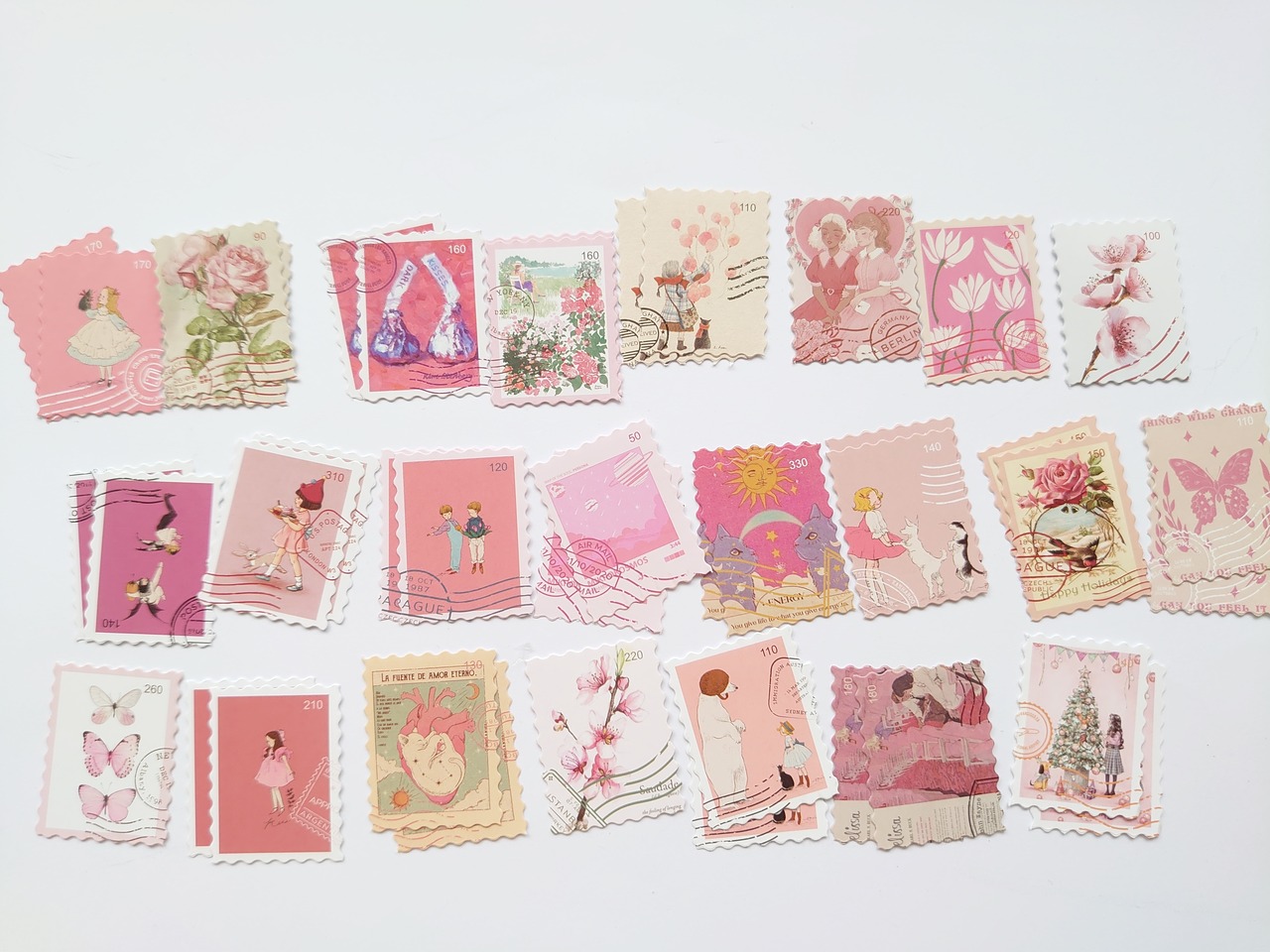 6枚【在庫限り】切手風 ピンク系 ステッカー シール デザインミックス