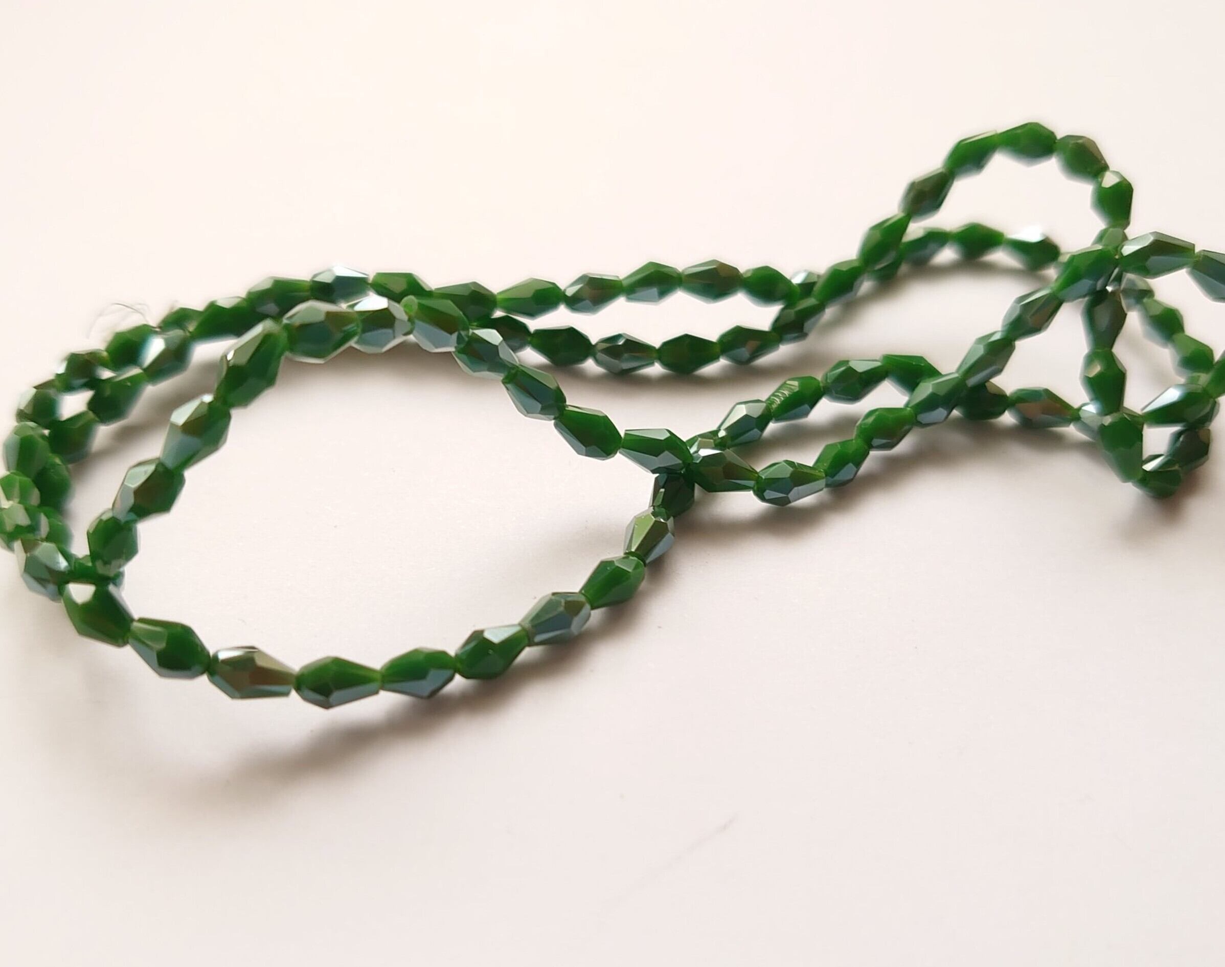 10個ガラス 落ち着きカラー グリーン 多面カット しずく ビーズ