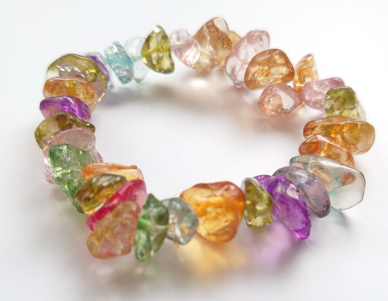 【在庫限り】クラック クォーツ 水晶 さざれ ミックスカラー ブレスレット