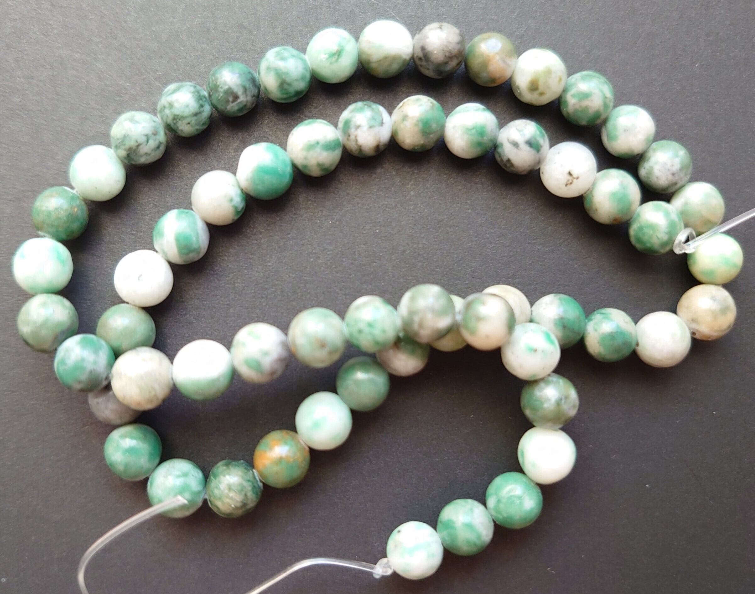 3個 翡翠 ラウンド ビーズ 6〜6.5mm