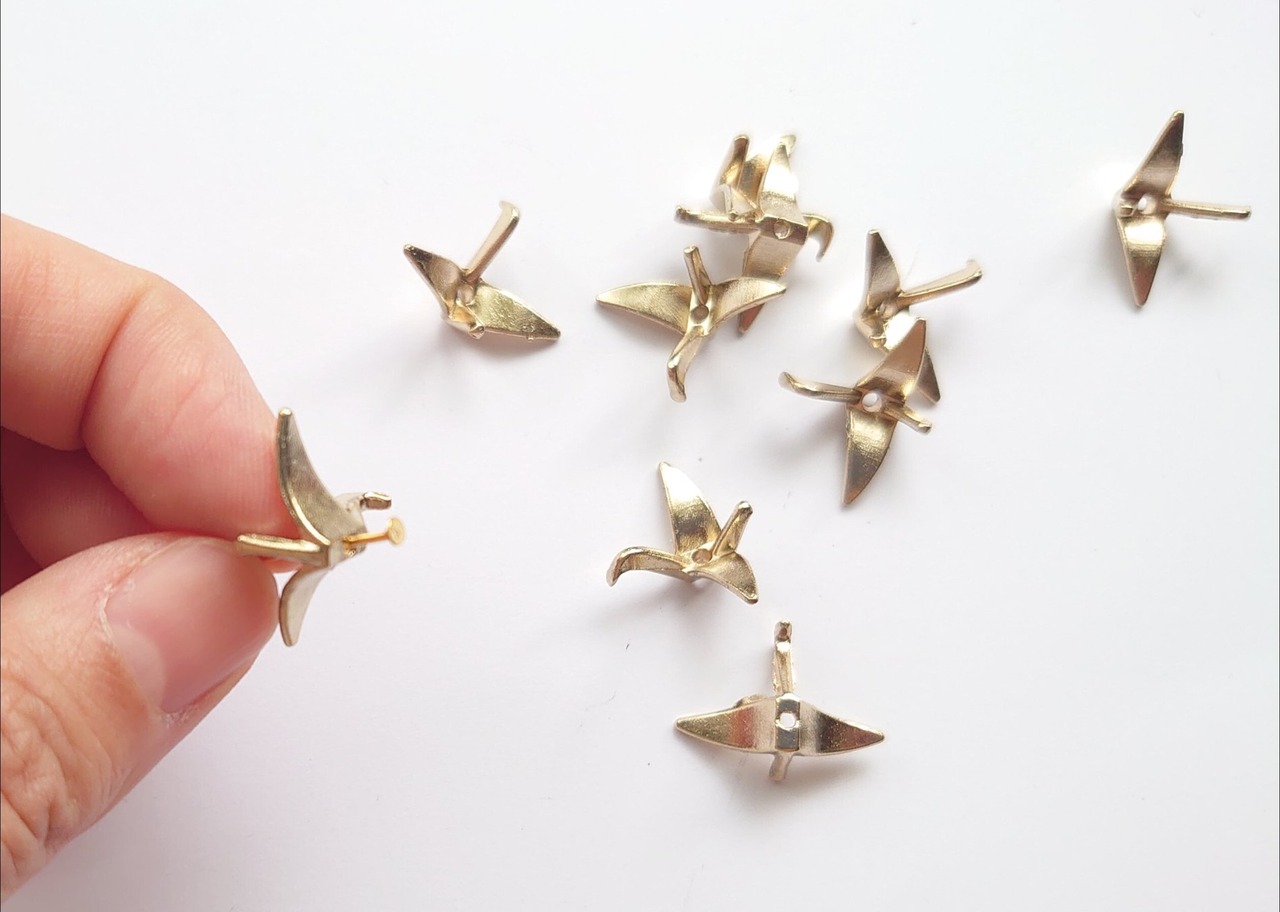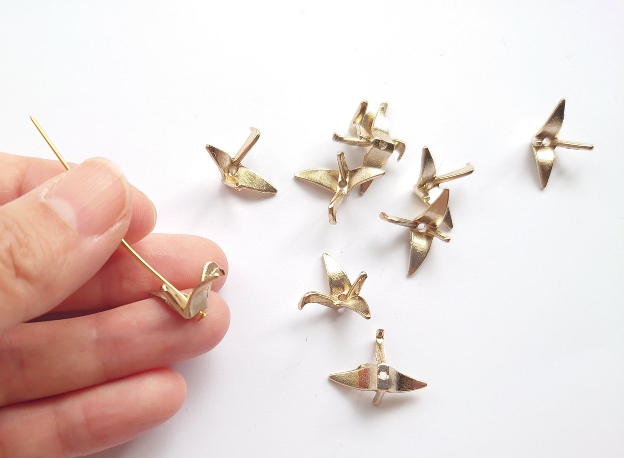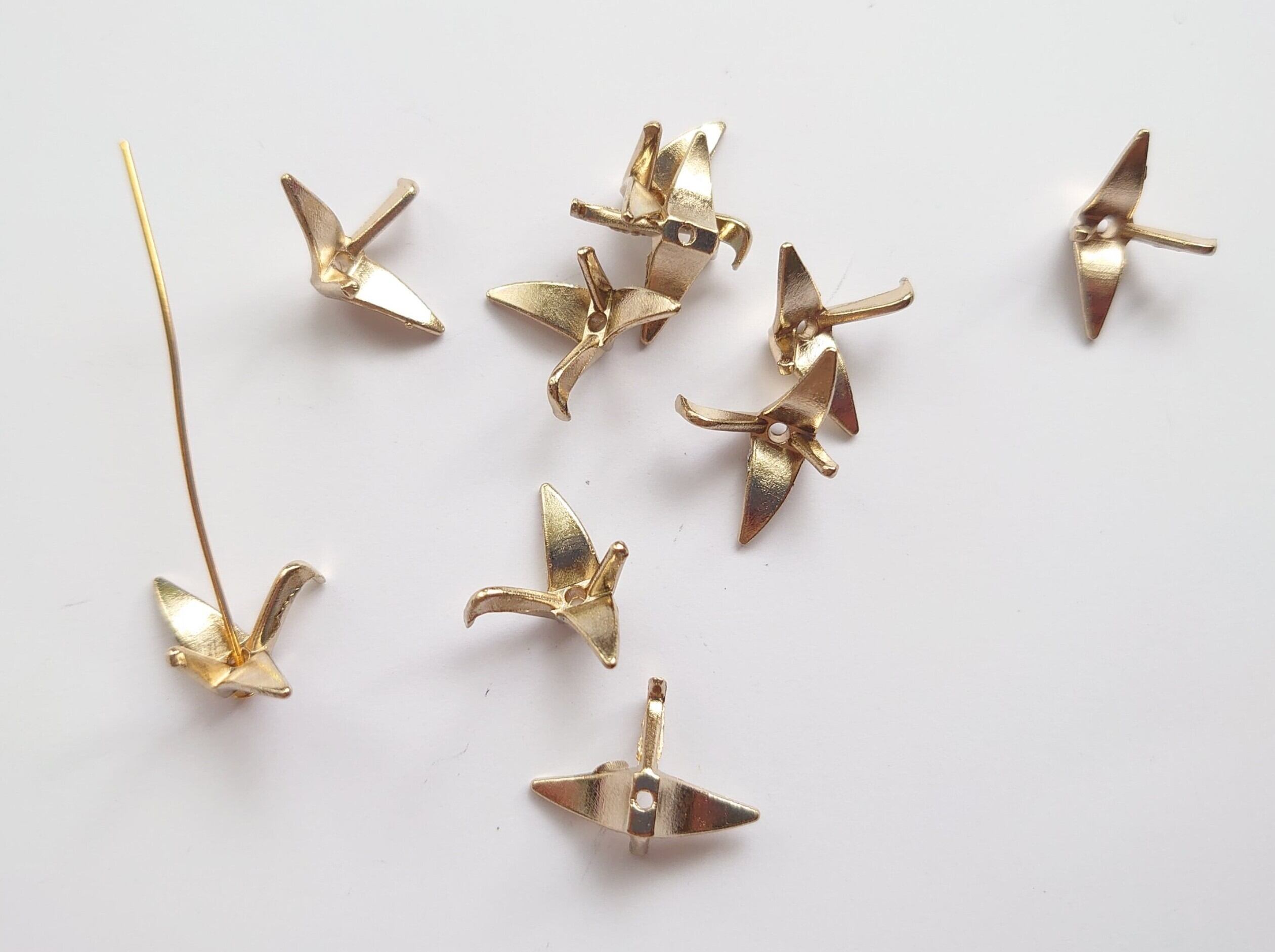 2個 合金 立体 鶴 折り鶴 折り紙 マットゴールド色