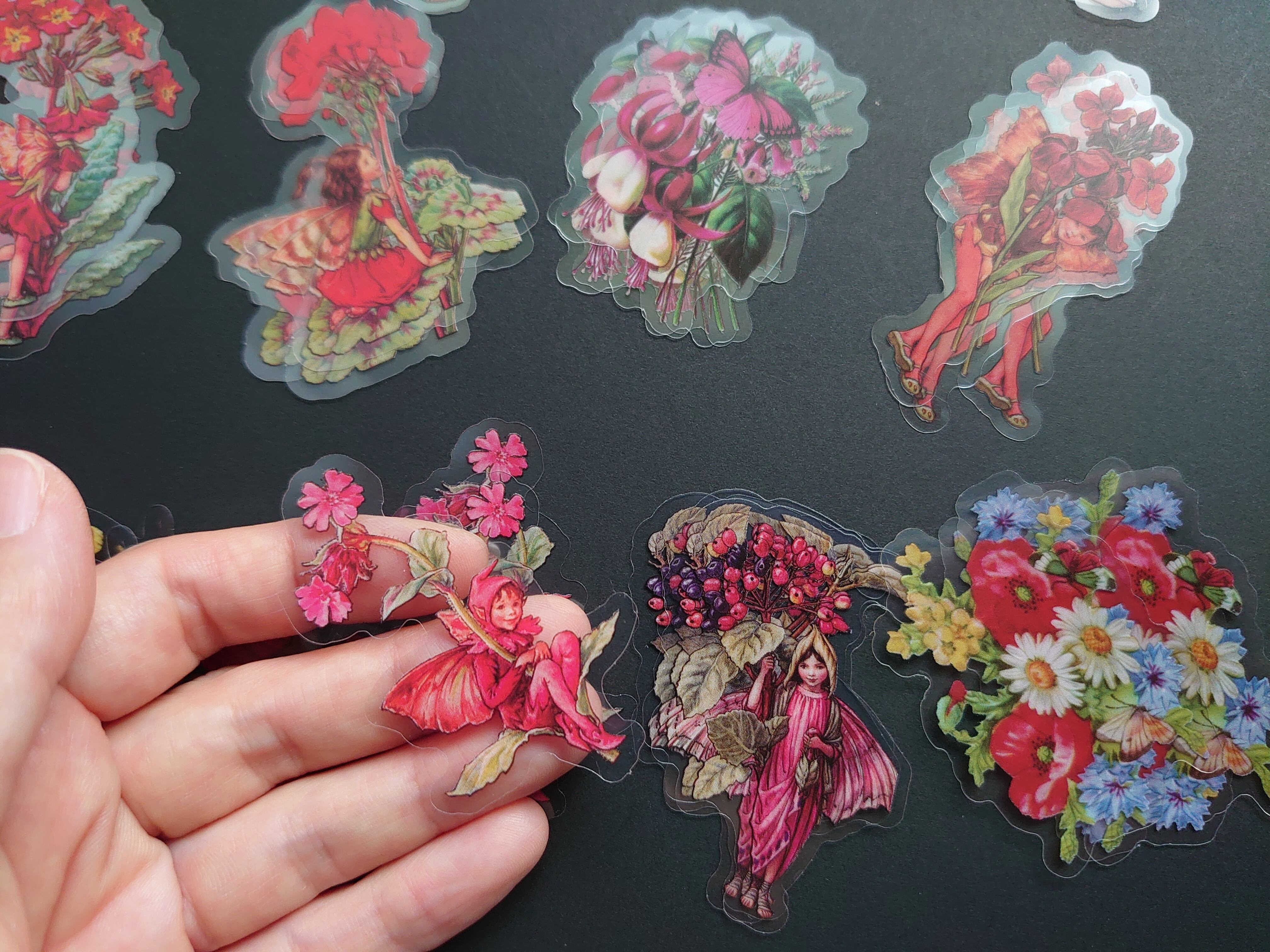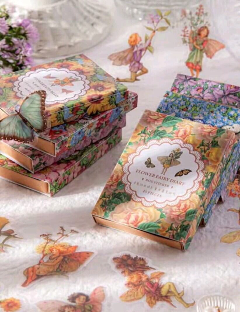 45枚 箱入り フェアリー 蝶々 植物 花 クリア フレークシール