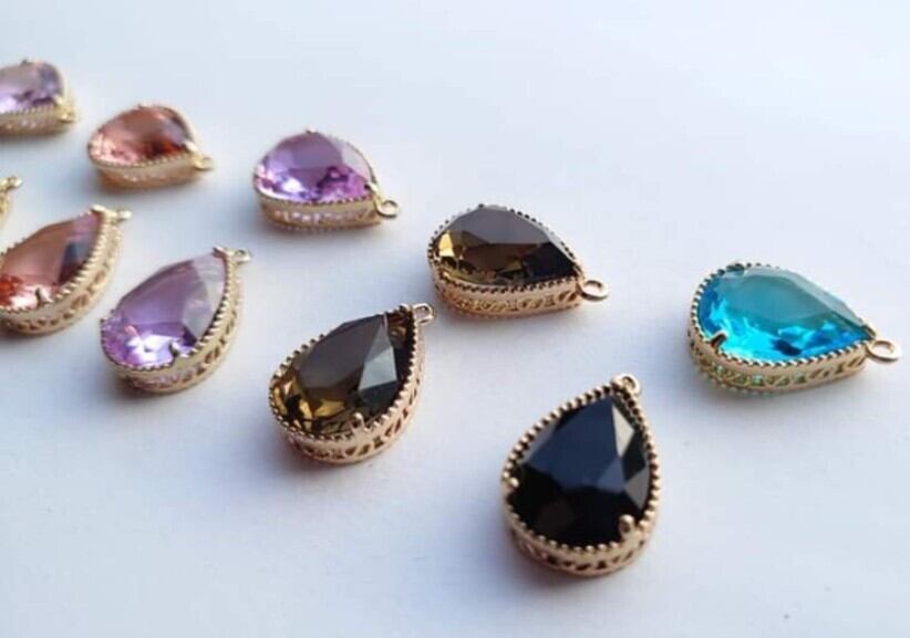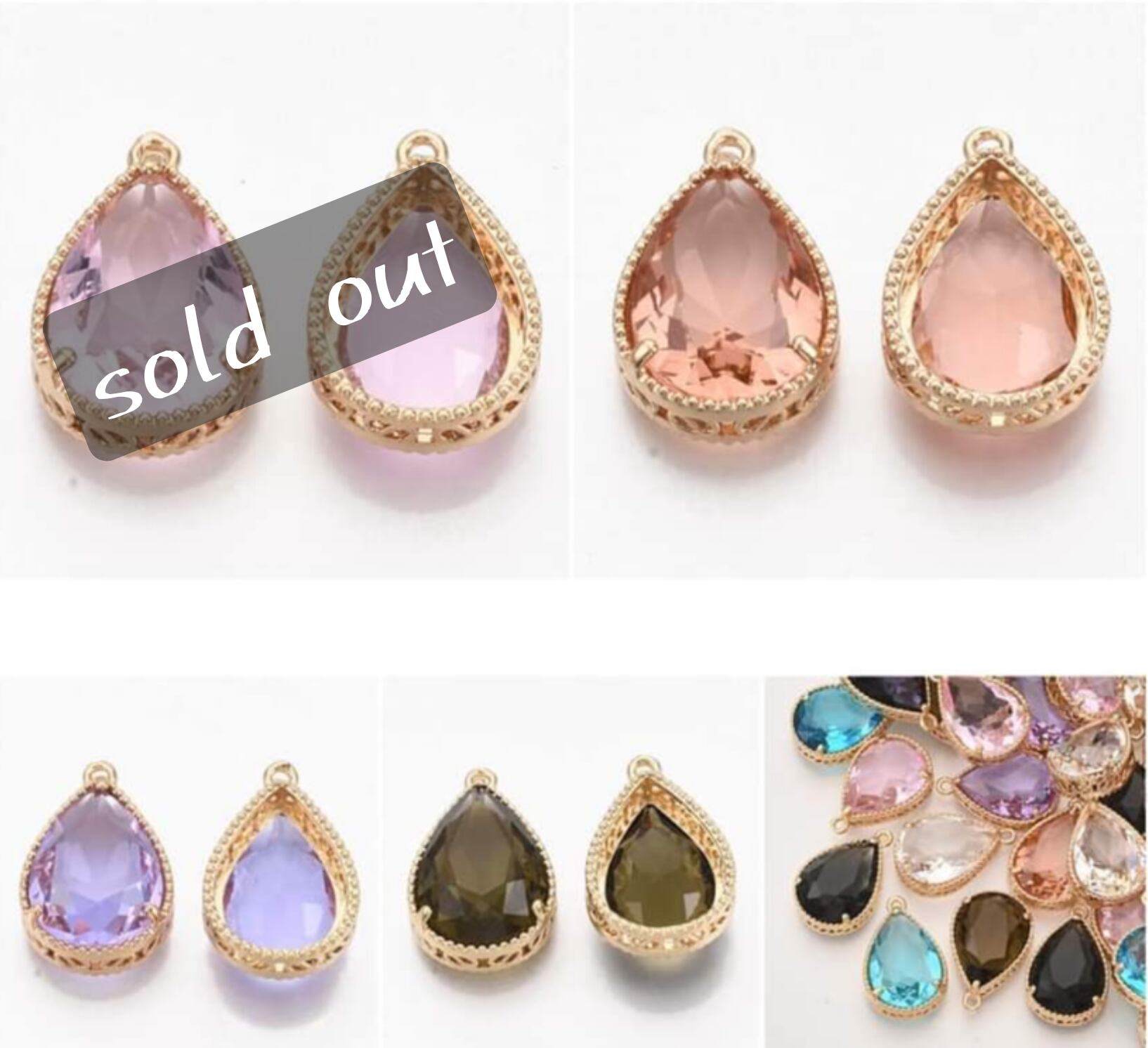 【値下げ在庫限り】真鍮 ガラス しずく チャーム