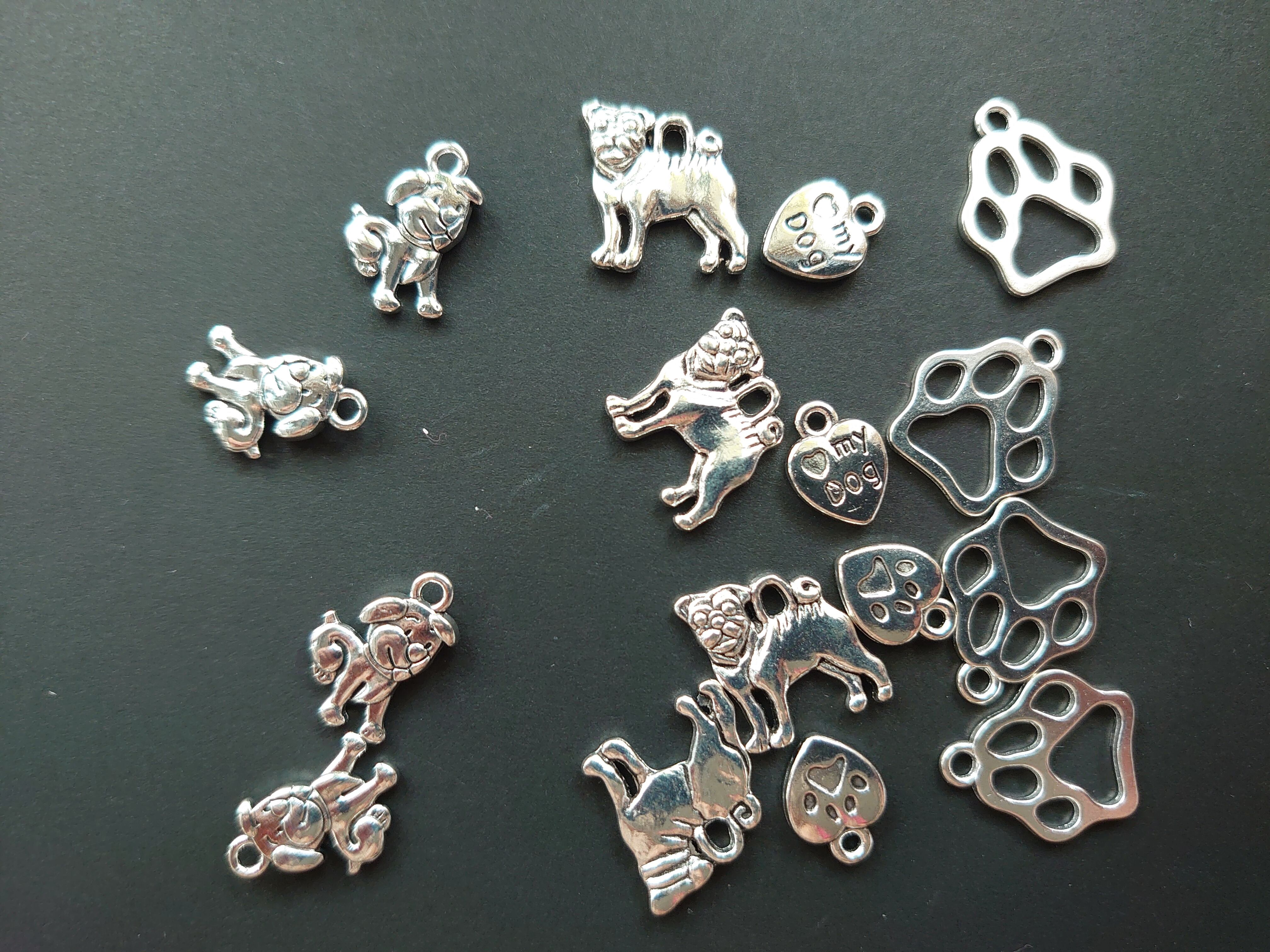 4個【値下げ在庫限り】合金 犬 肉球 チャーム ロジウム色