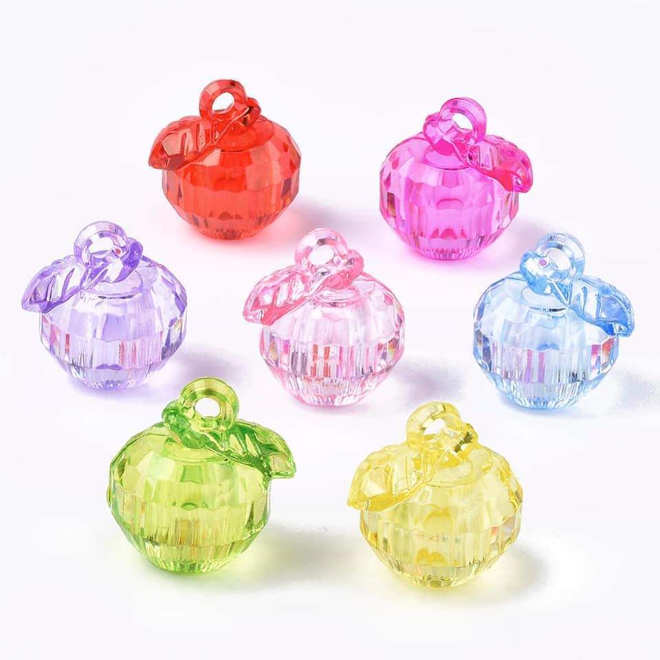 2個 【値下げ在庫限り】アクリル 多面カット りんご チャーム クリア ミックスカラー アップル