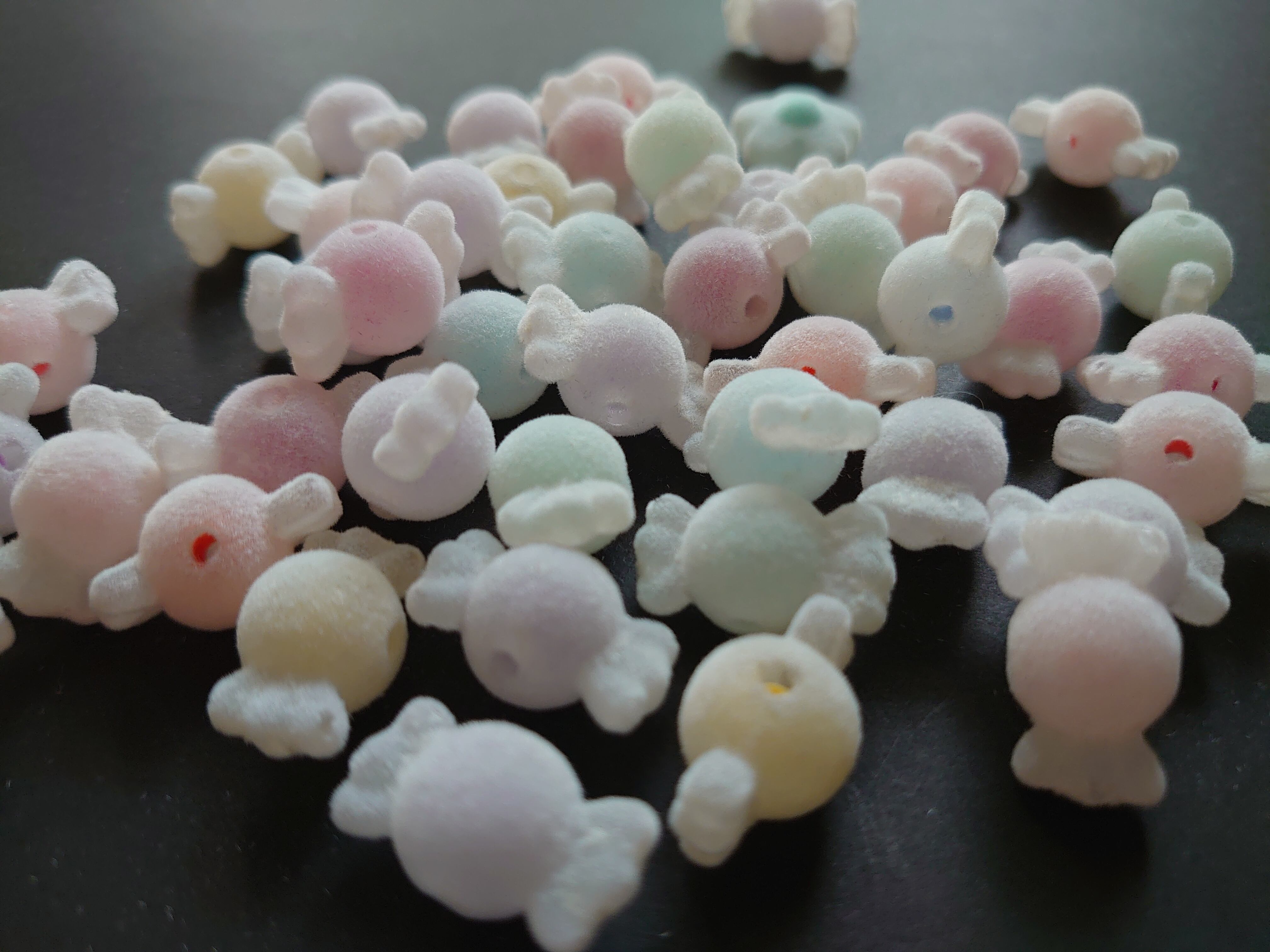 ※プラスチックビーズにフロッキー加工を施しているため、穴付近のバリなど混じる場合がございます。