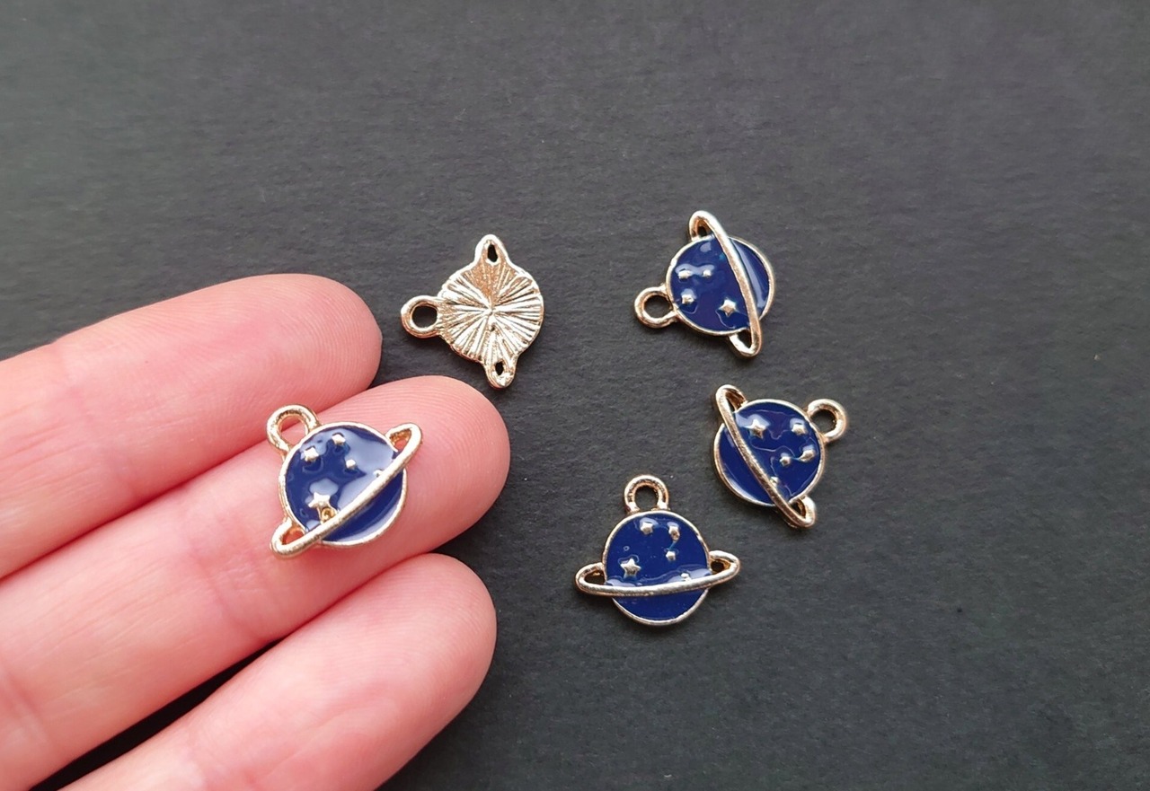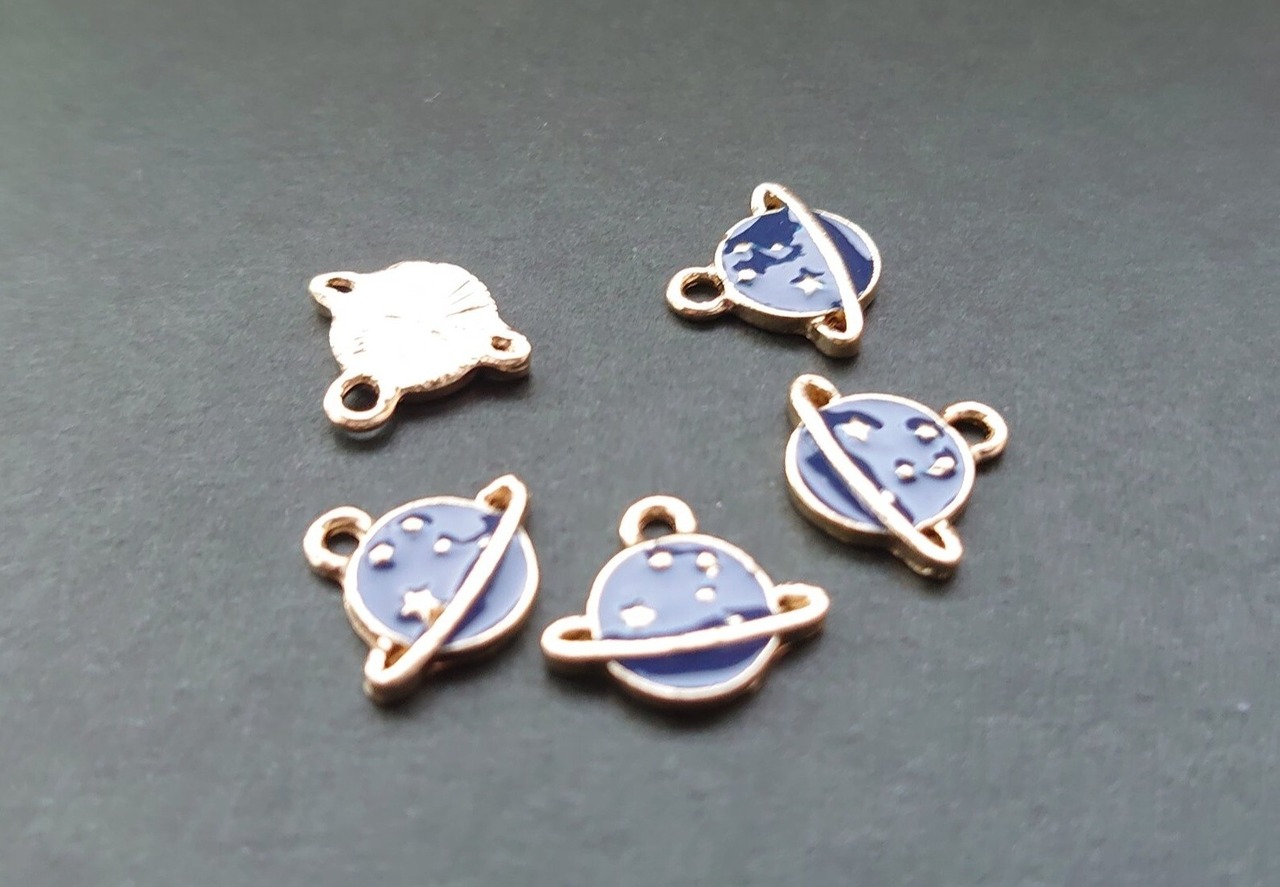 5個セット/合金 エナメル 土星 チャーム ブルー