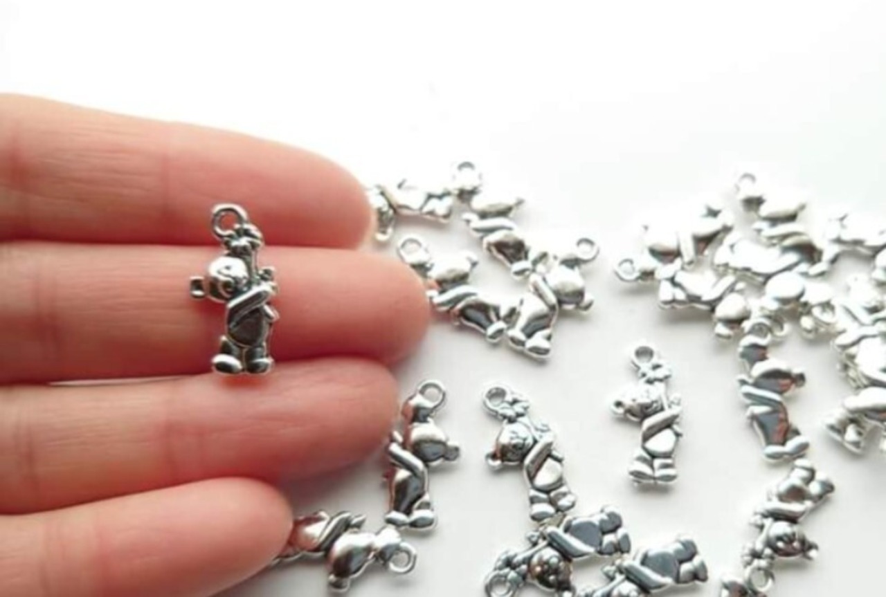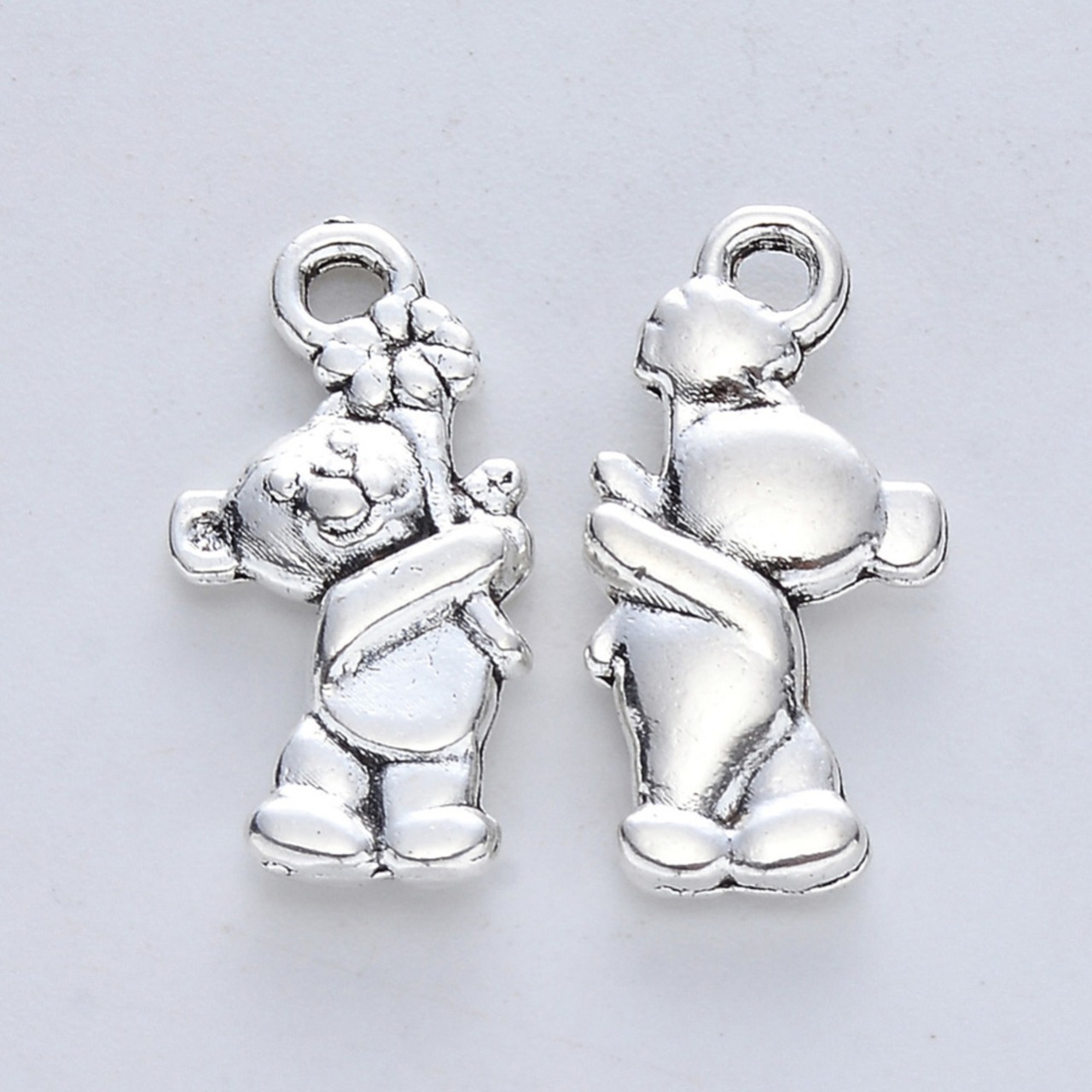 【値下げ在庫限り】合金 花を持ってる クマ チャーム アンティーク調ロジウム色