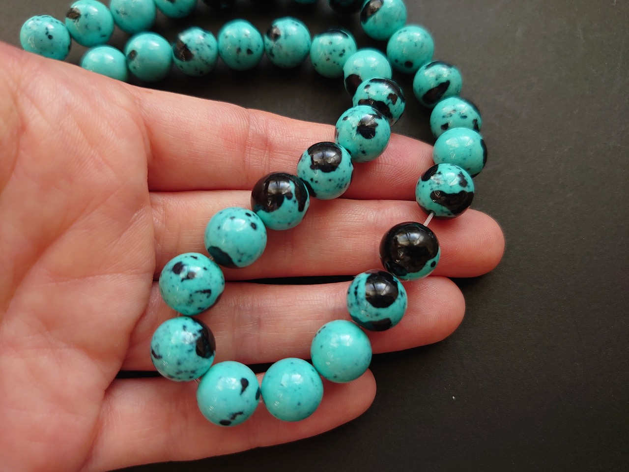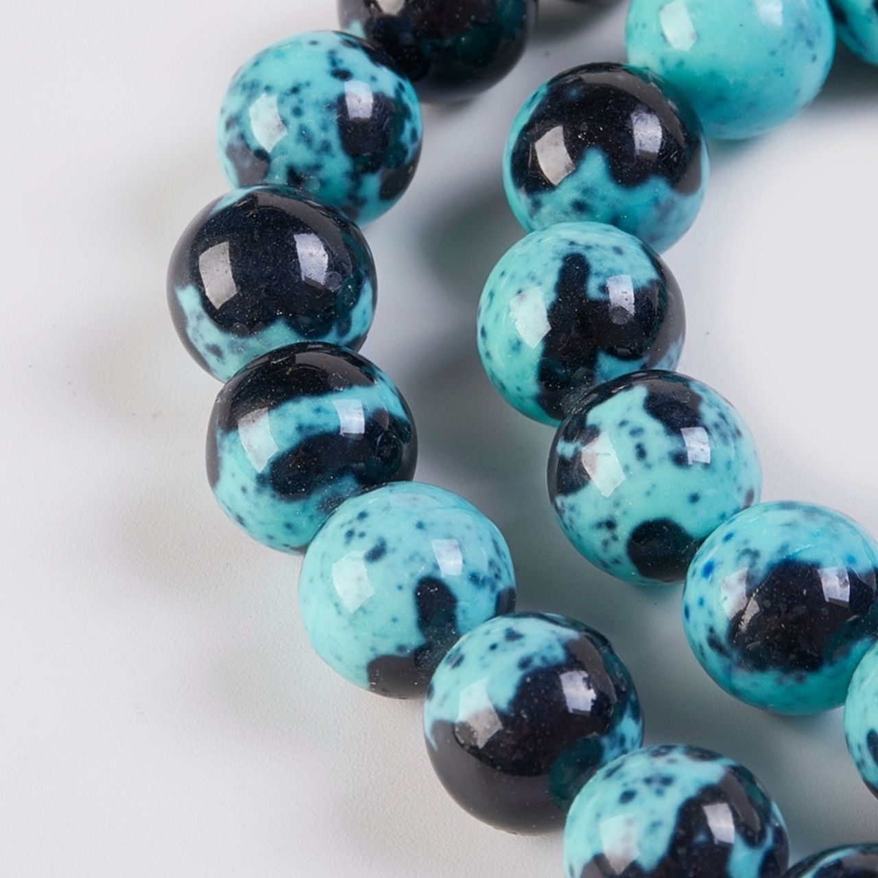 【値下げ在庫限り】水色×ブラック 染め ホワイトジェイド 10mm ラウンド ビーズ