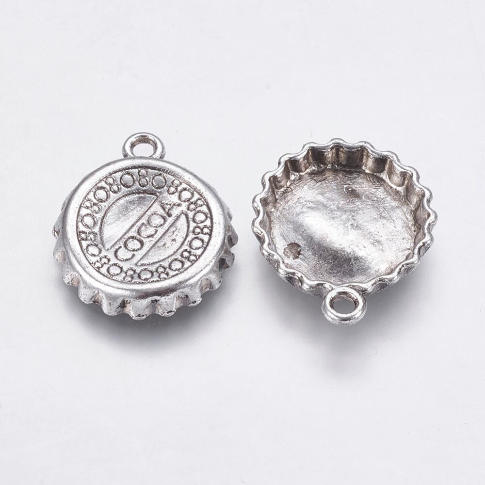 【値下げ在庫限り】合金 王冠 キャップ風 チャーム アンティーク調 ロジウム色 2個