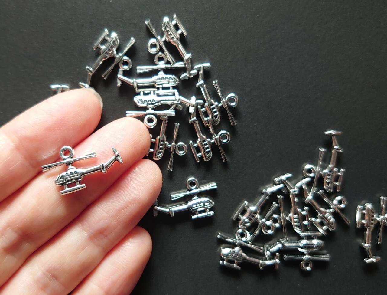 【値下げ在庫限り】合金 ヘリコプター アンティーク調 ロジウム色