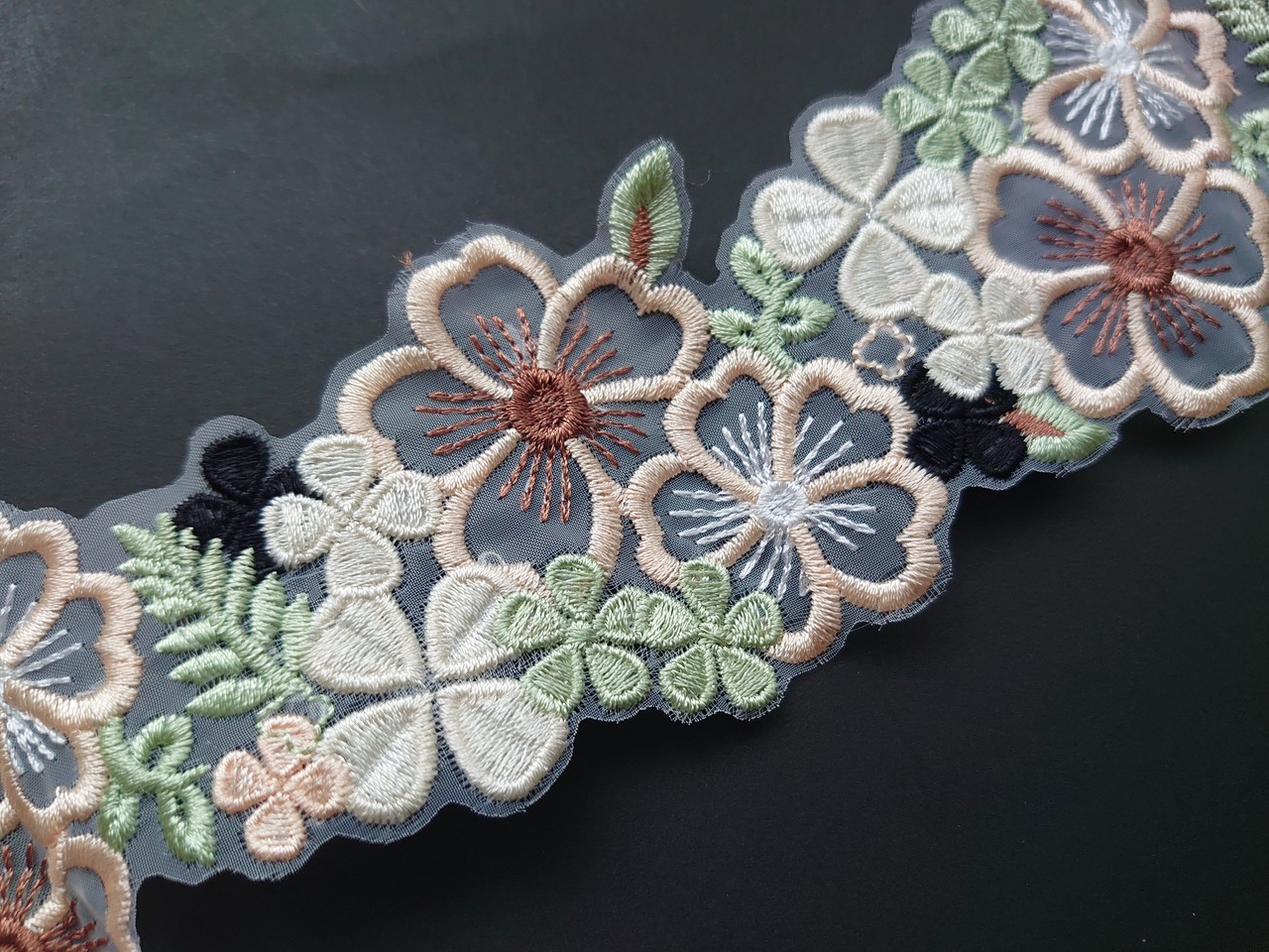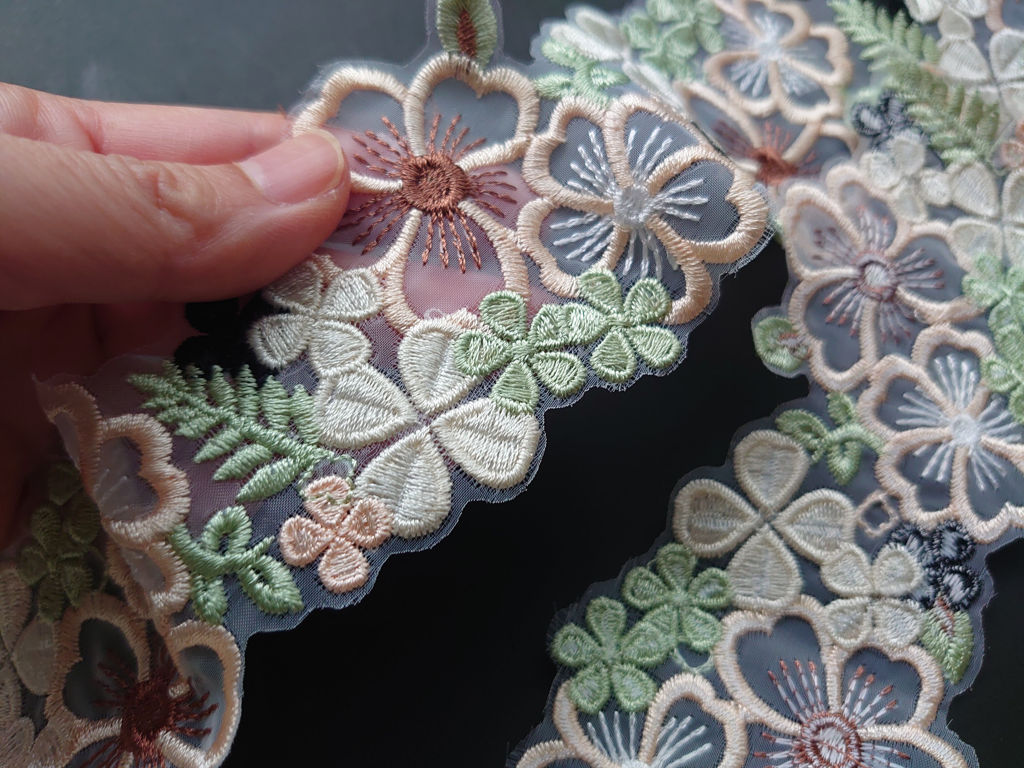透かし フラワー 刺繍 リボン 葉っぱ 1モチーフ