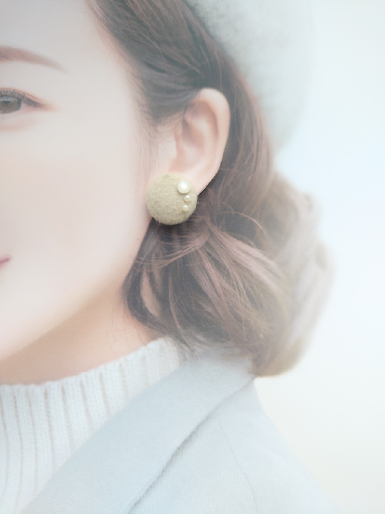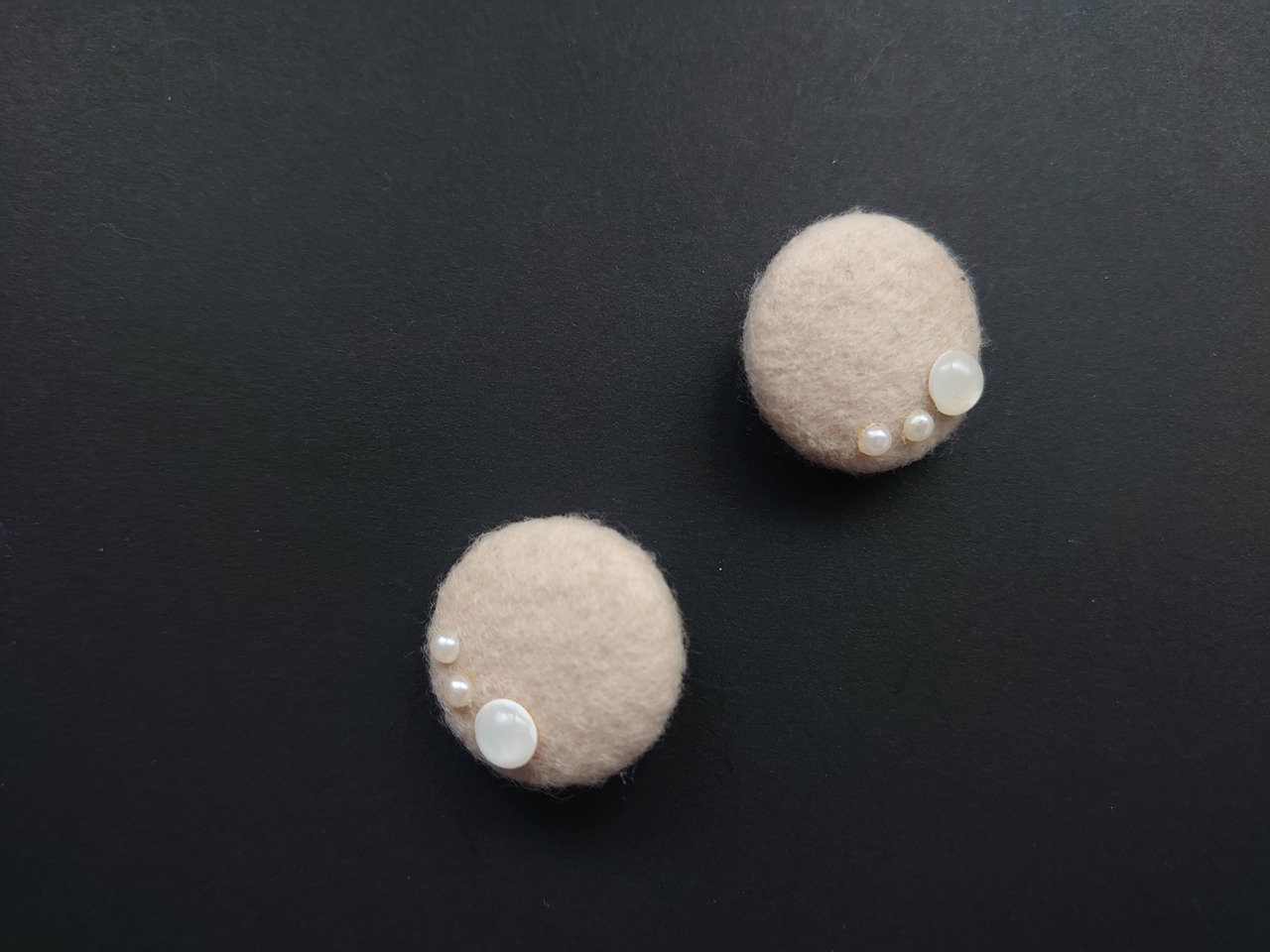 半額以下セール!イヤリング フェルト ボタン ベージュ 秋冬 PohonhandmadeJewelry