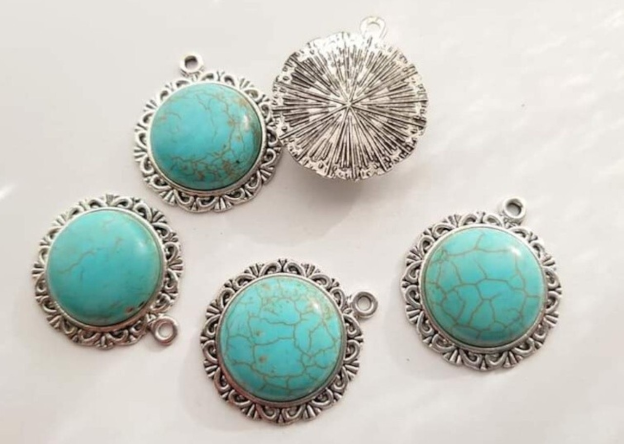 【値下げ在庫限り】合成 ターコイズ 半円 フラワー ペンダントトップ