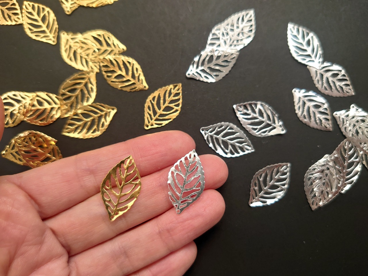 【値下げ在庫限り】アイアン 極薄 葉脈 葉っぱ チャーム 10個