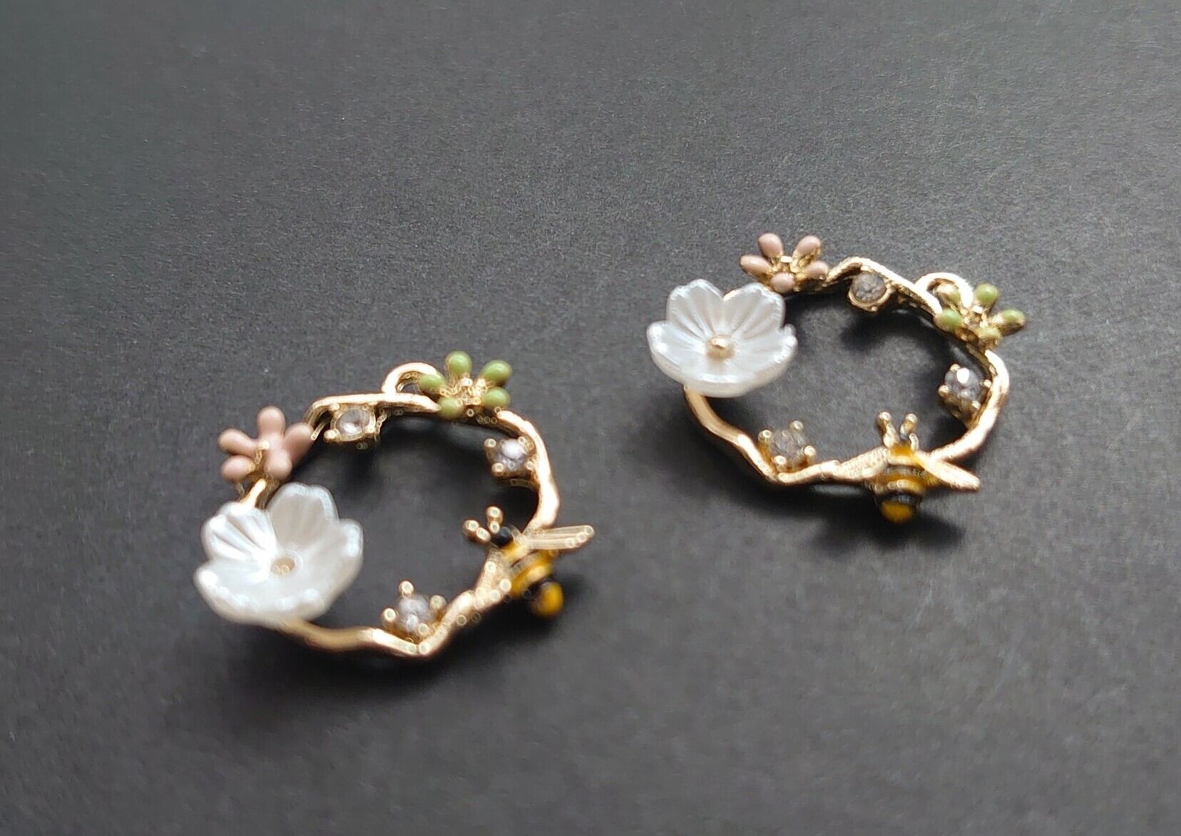 【値下げ在庫限り】合金 エナメル 蜂 ラインストーン ラウンド チャーム