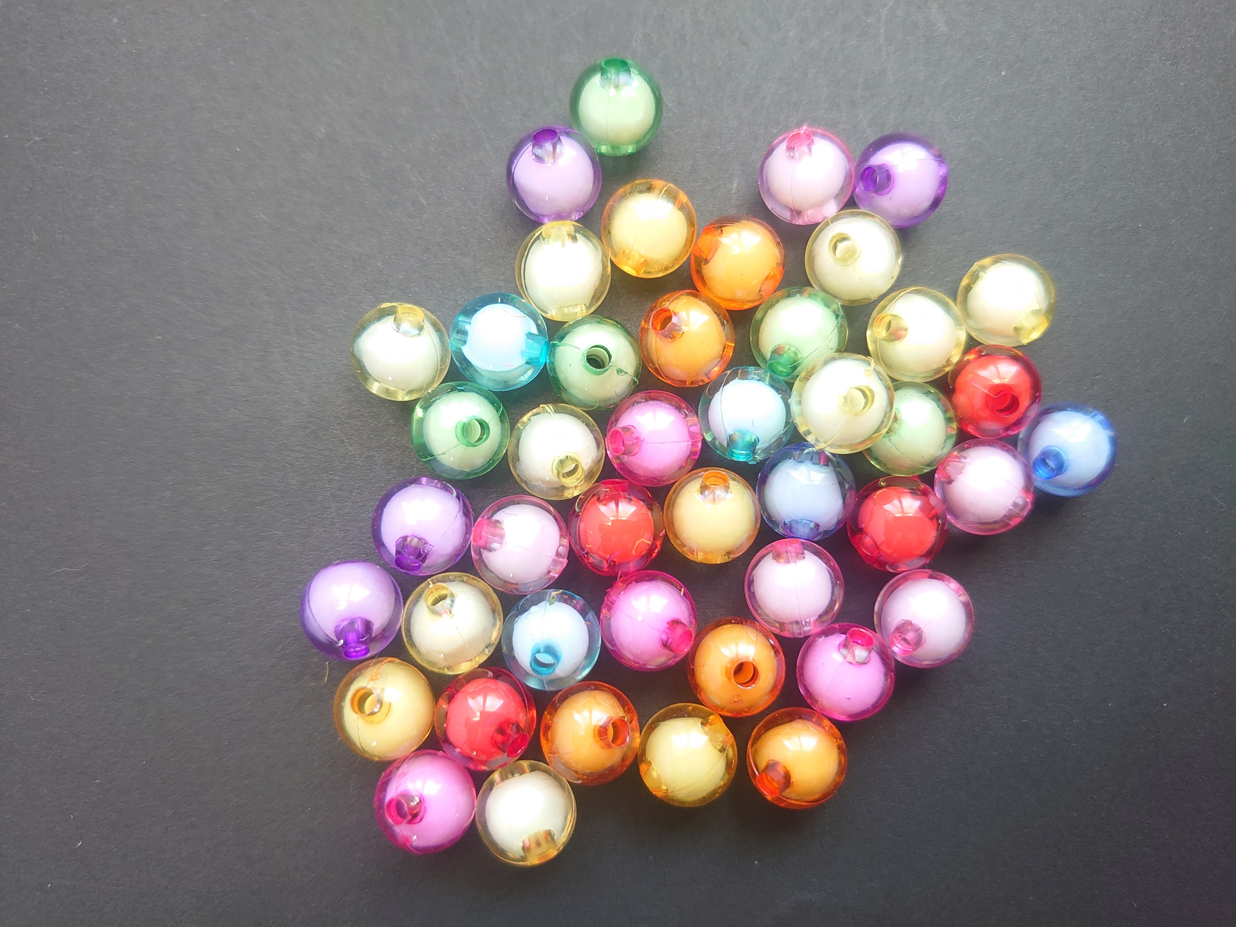 アクリル 中央ホワイト 10mm クリア ラウンド ビーズ ミックスカラー 10個