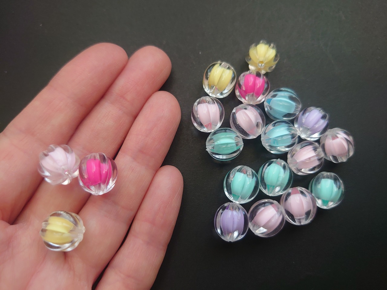 アクリル 中央カラー メロン ビーズ クリア ミックスカラー 5個