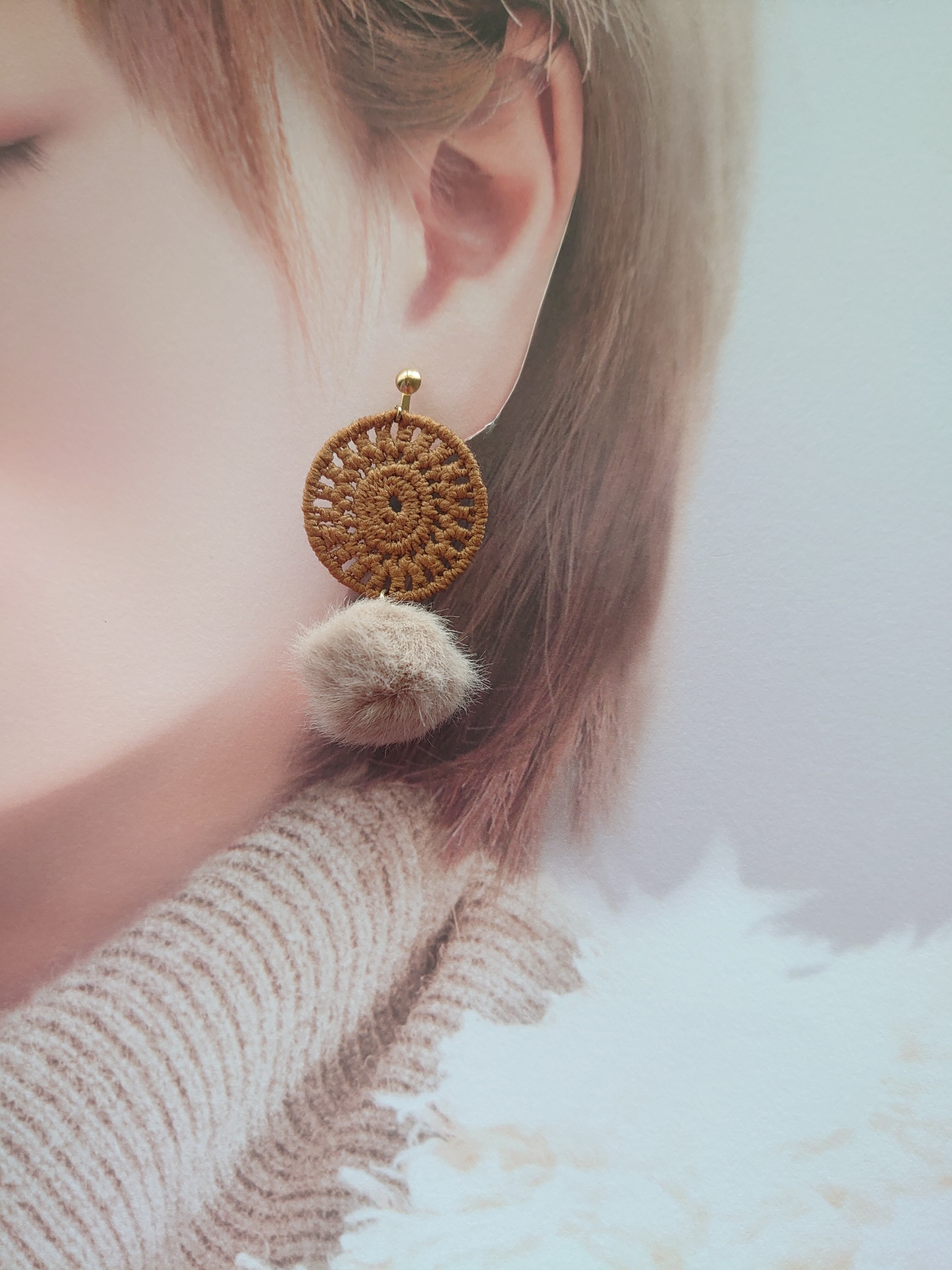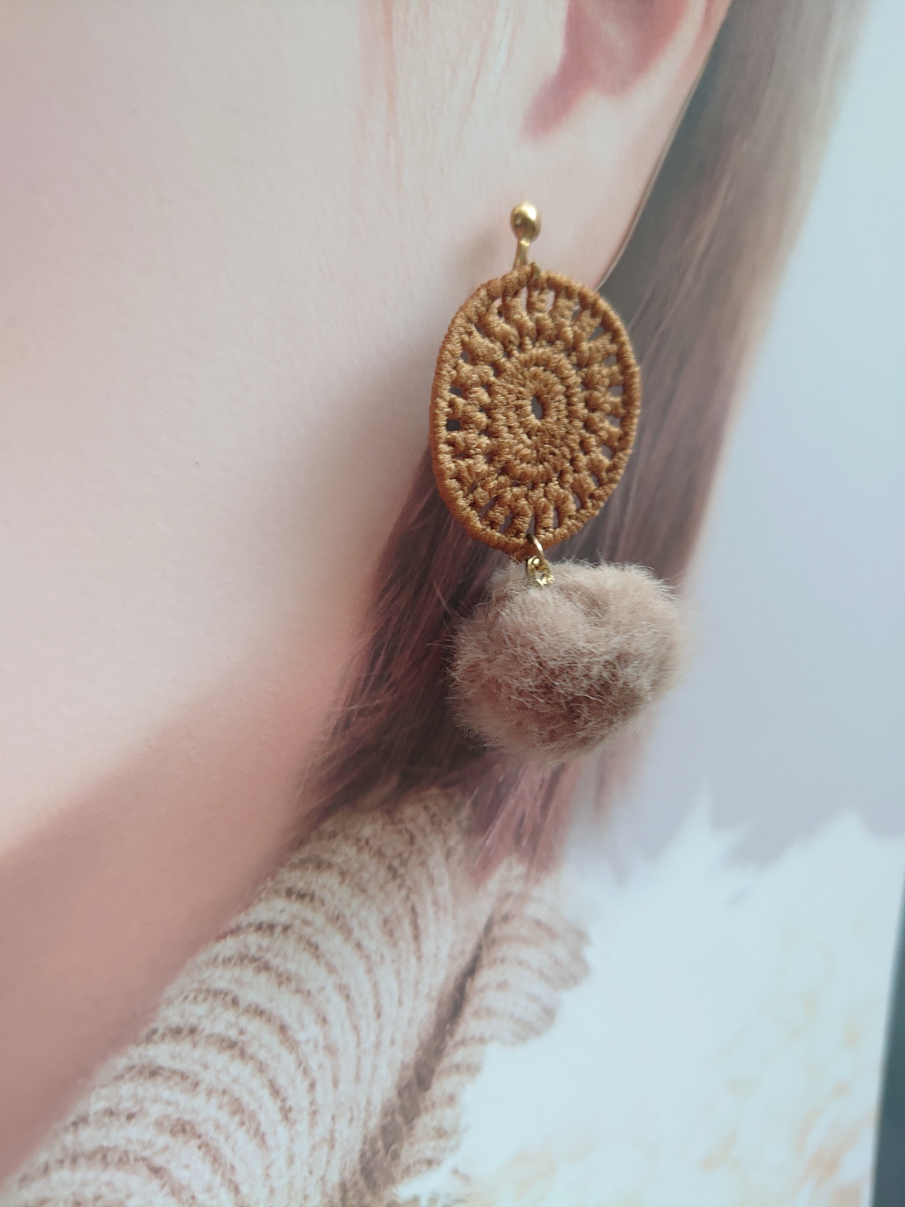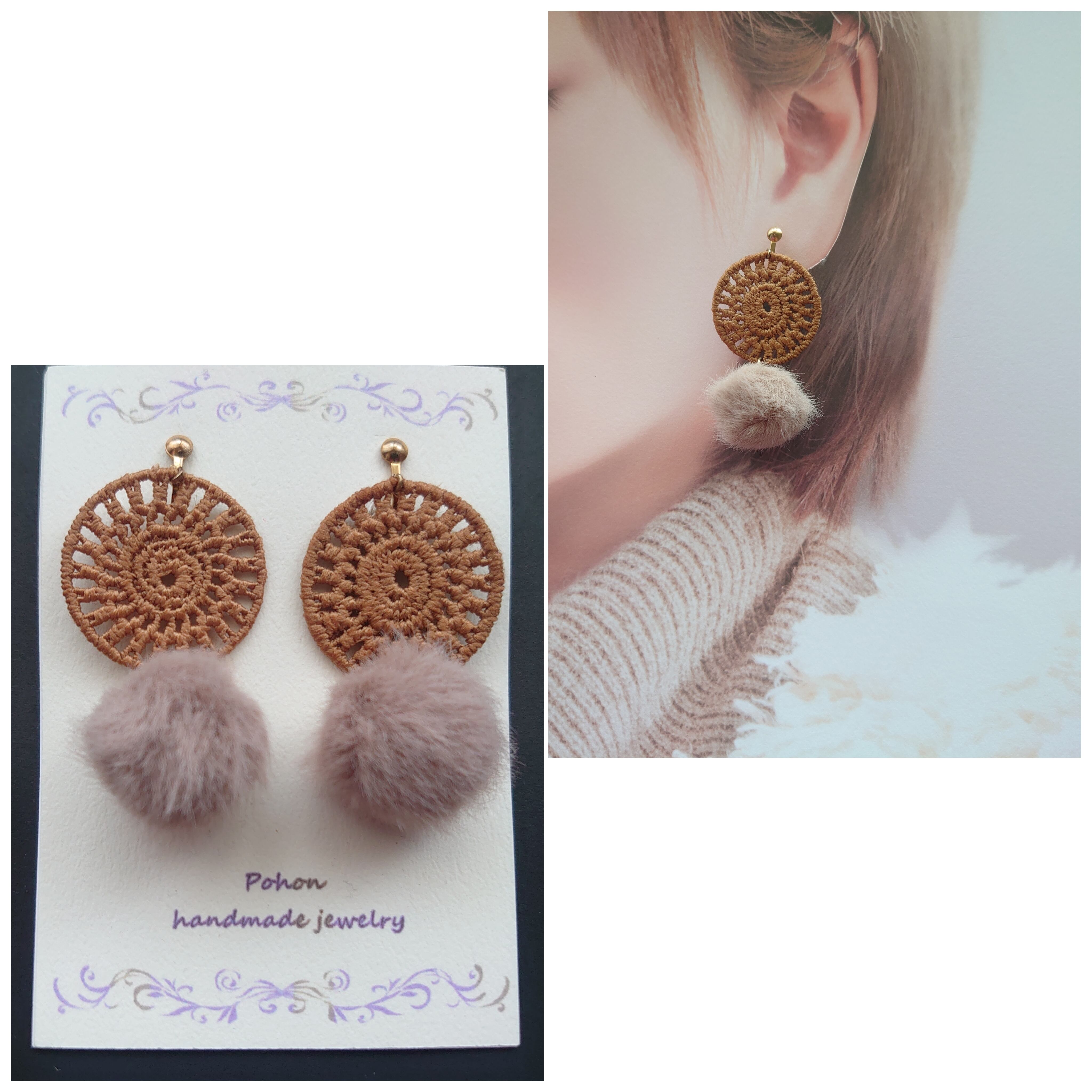 半額以下セール!ラウンドレース ファー イヤリング ※金具変更可能 PohonhandmadeJewelry