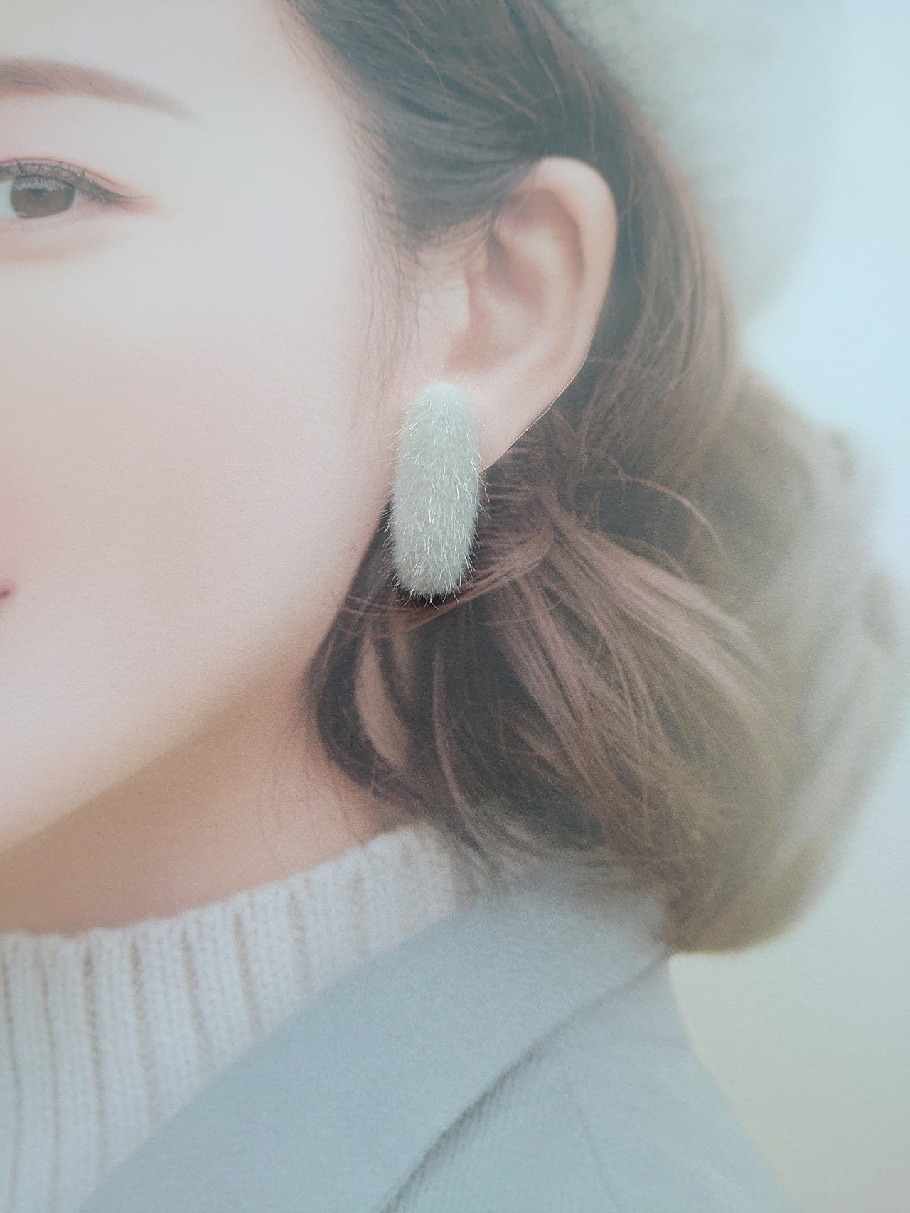 半額以下セール!フェイクファー オーバル イヤリング PohonhandmadeJewelry