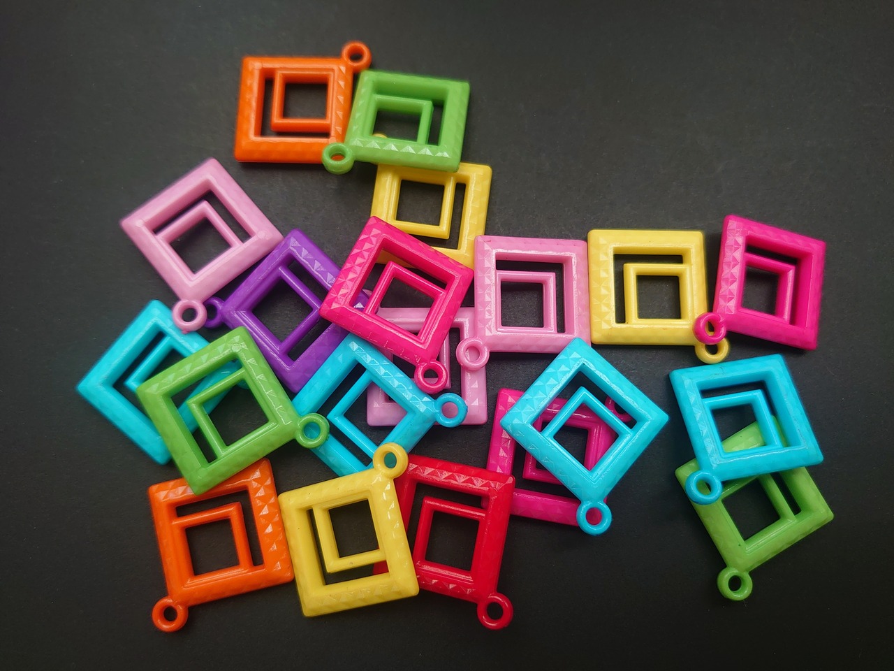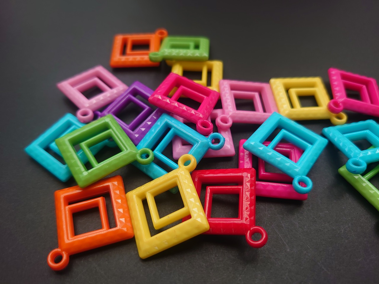 【在庫限り】アクリル ダブル ひし形 スクエア チャーム ミックスカラー10個