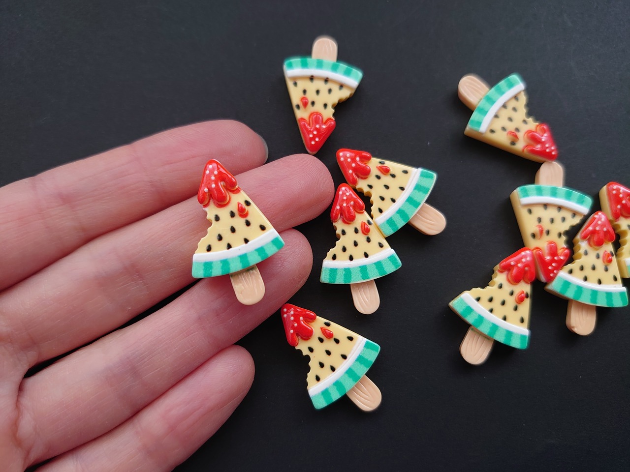 【在庫限り】樹脂 スイカ アイスキャンディー カボション 2個