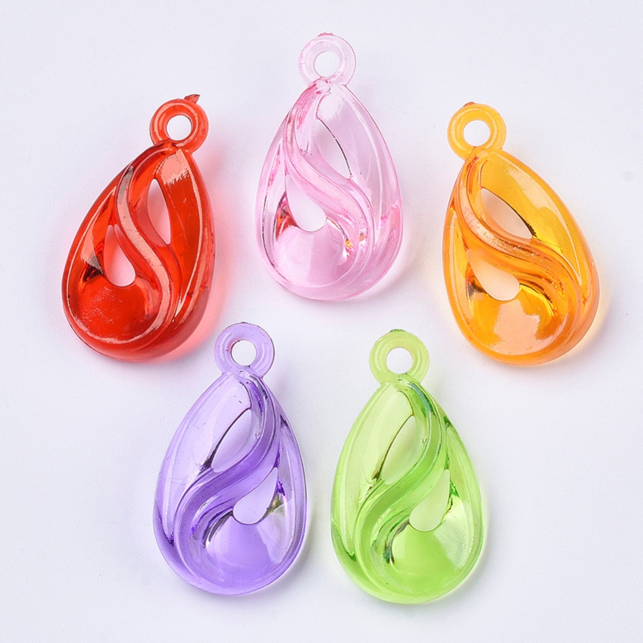 アクリル デザインしずく チャーム クリア ミックスカラー 10個