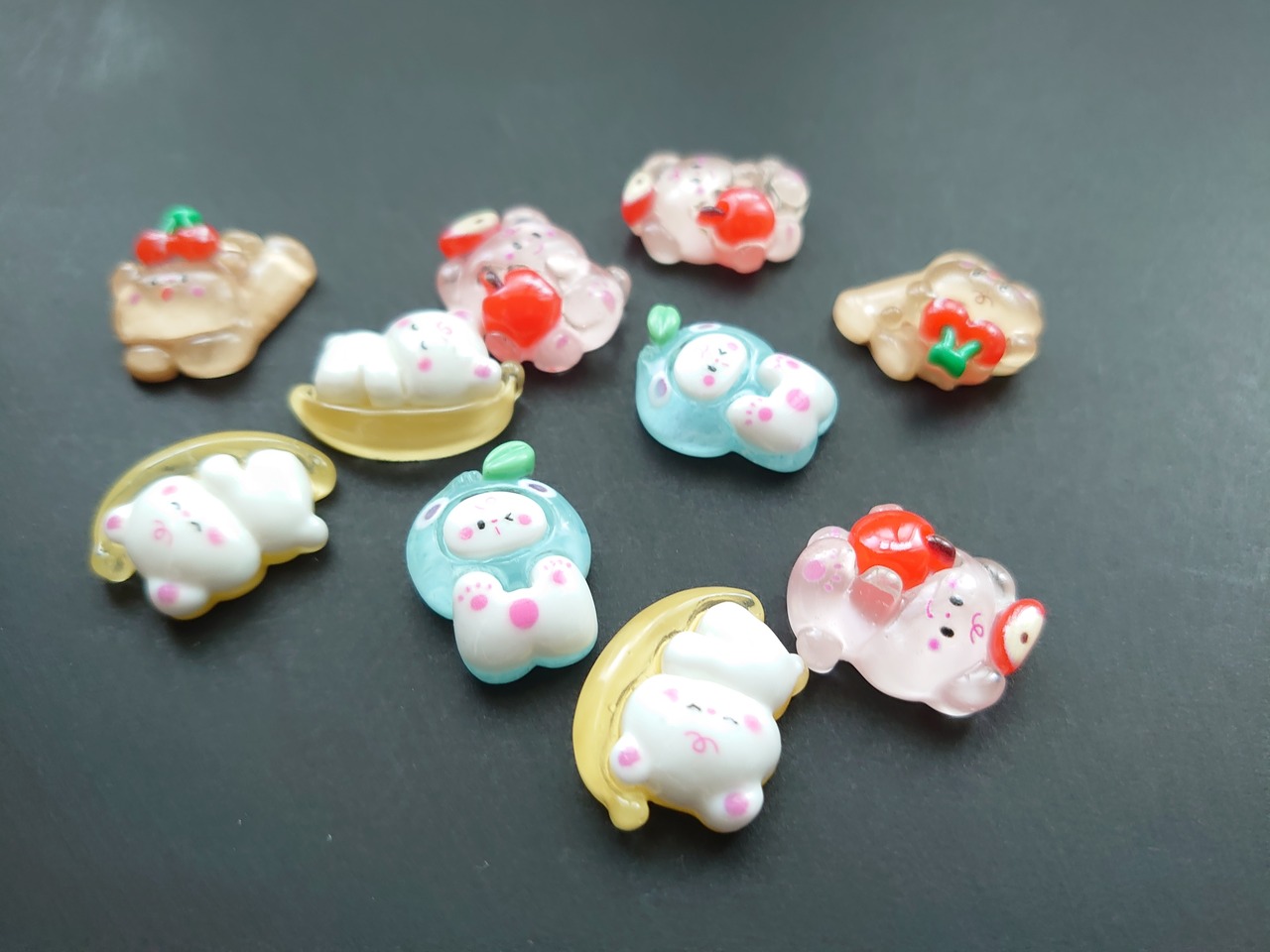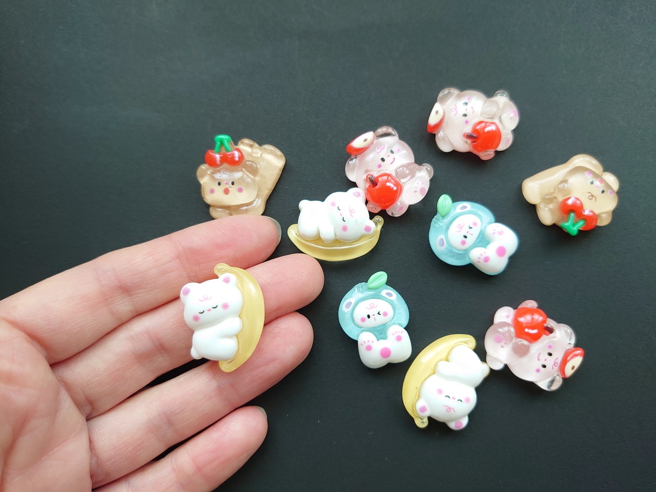 樹脂 フルーツ と クマ カボション デザインミックス 2個