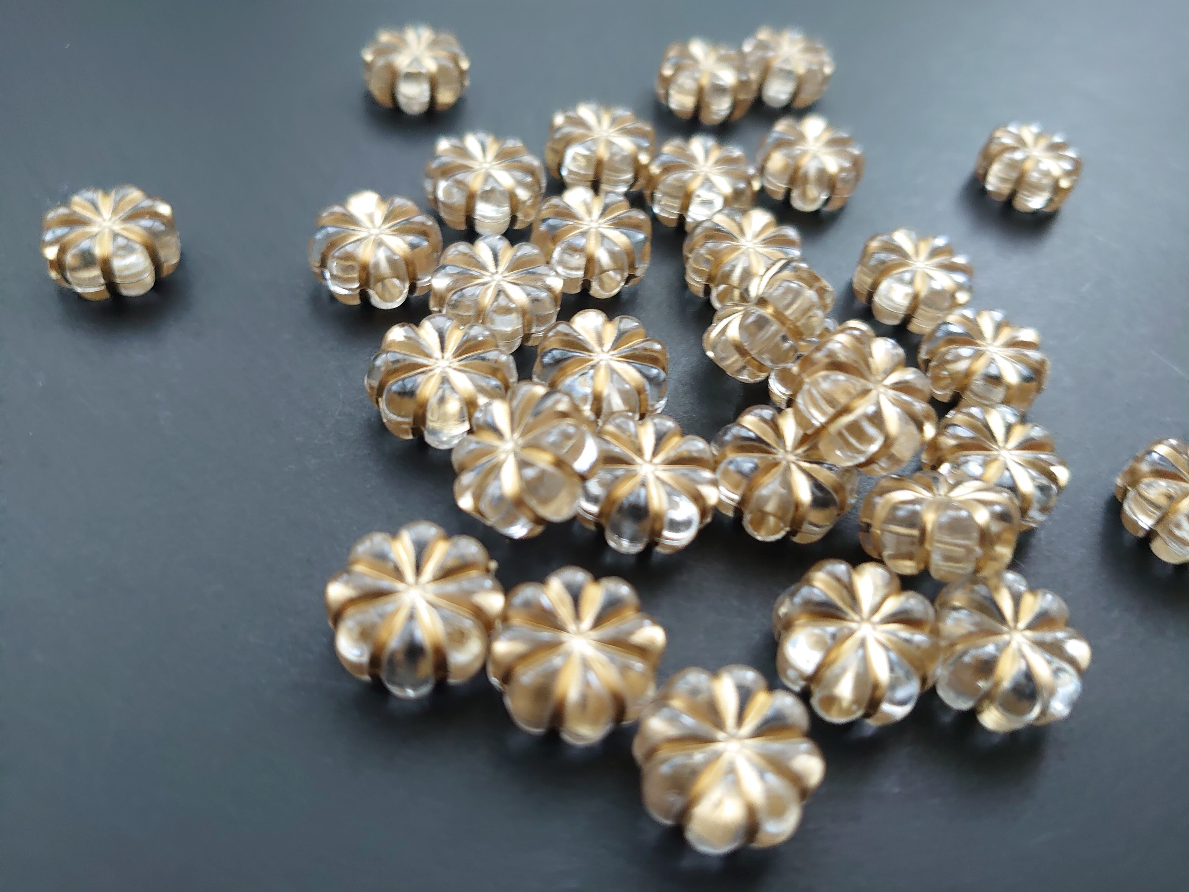 アクリル ゴールドライン フラワー ビーズ アンティーク調 クリア 13mm 5個
