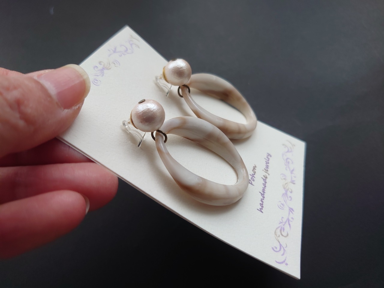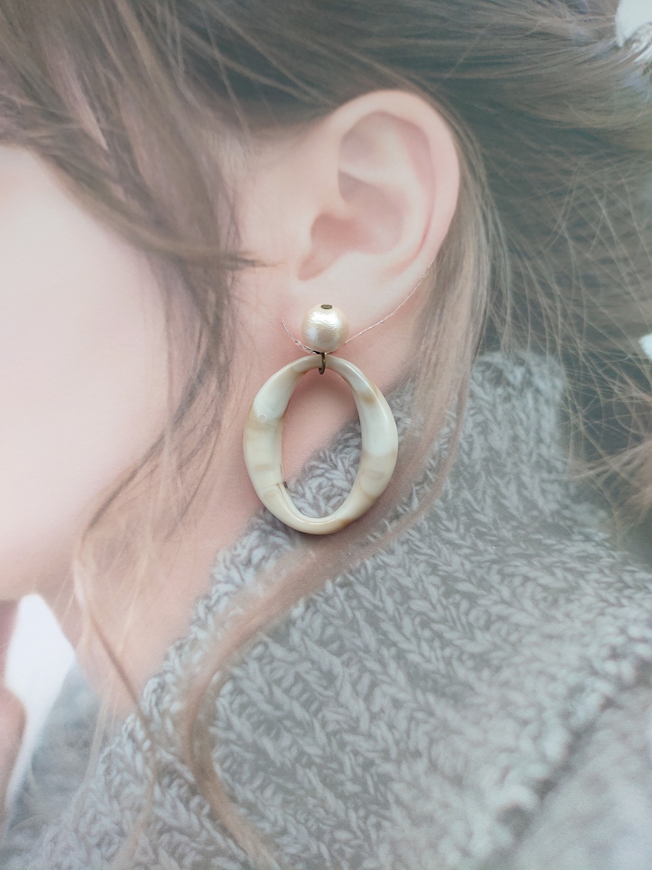 半額以下セール!コットンパール アクリルオーバル ノンホールピアス/ PohonhandmadeJewelry