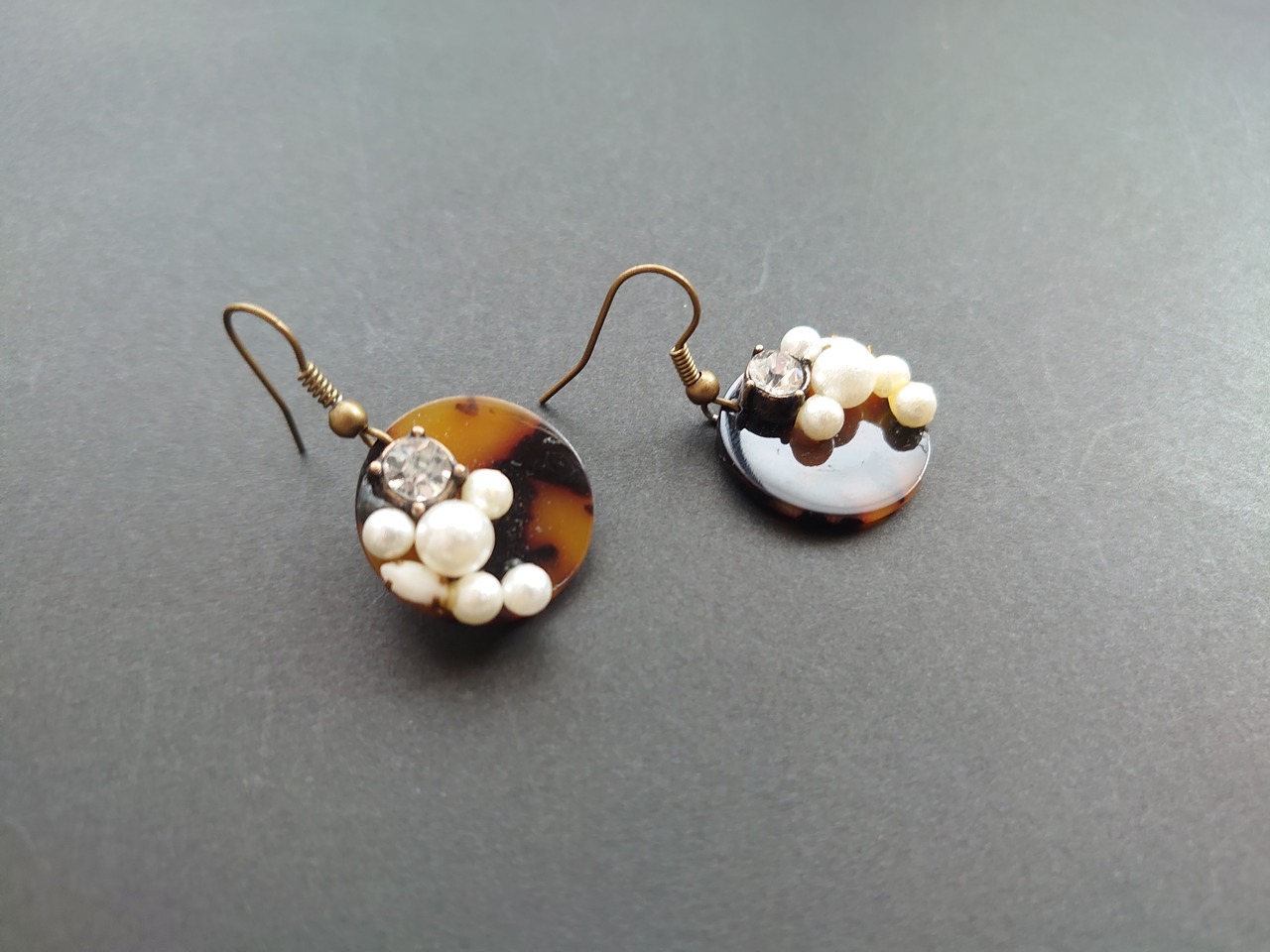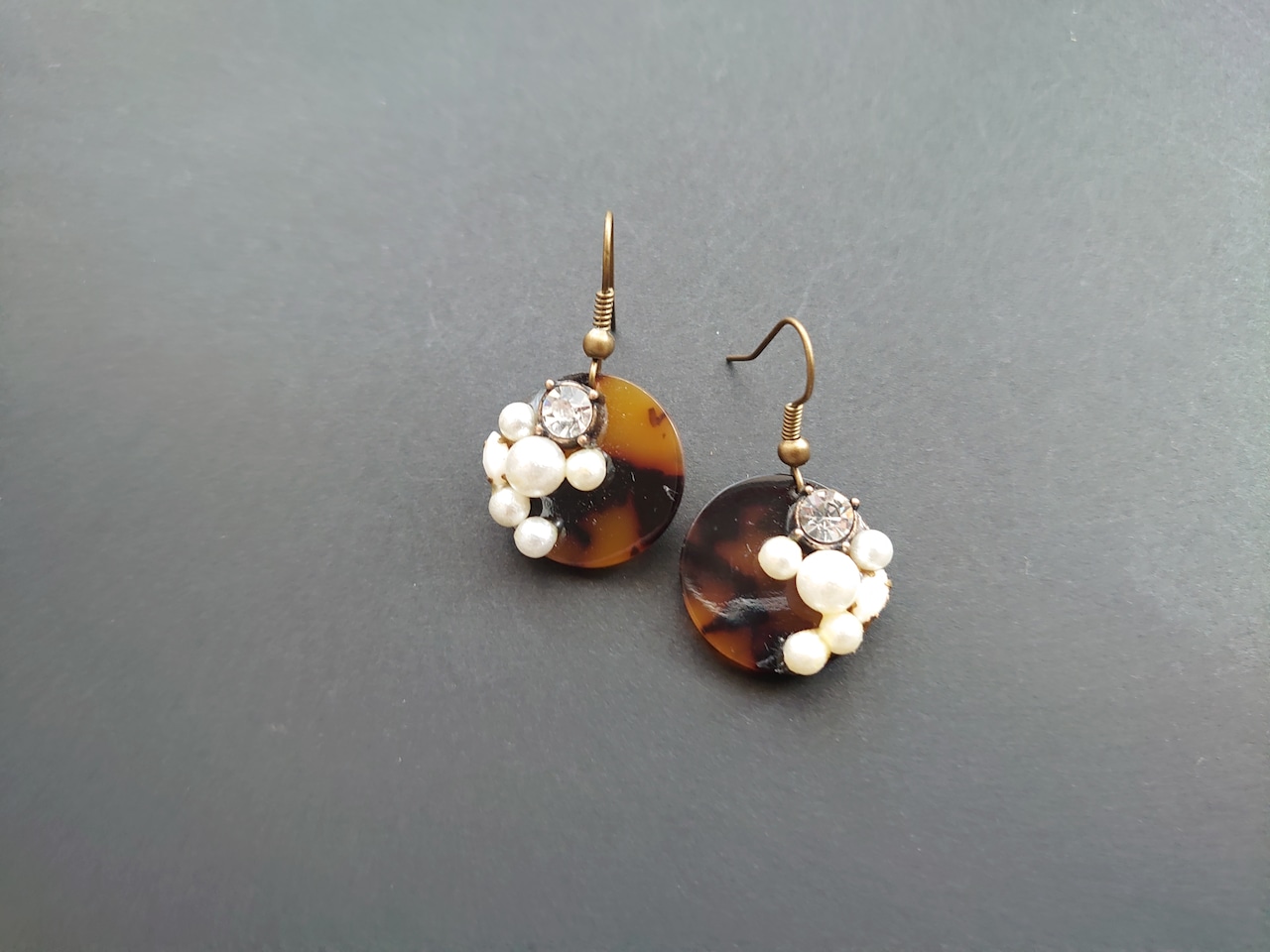 半額以下セール!べっ甲風 ビジュー ピアス / PohonhandmadeJewelry