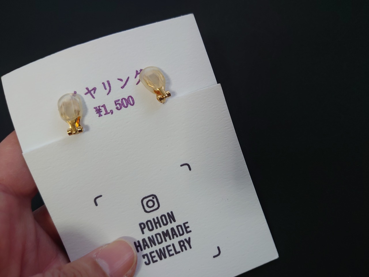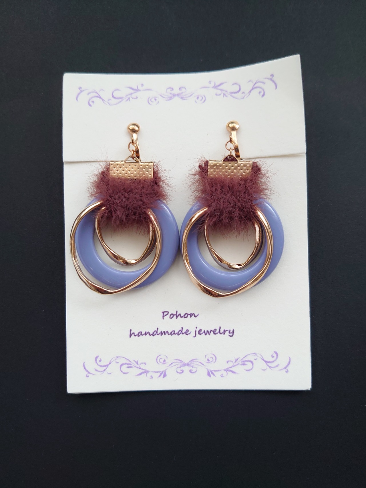 半額以下セール!ラウンド ブルー×ゴールド ファーリボン イヤリング / PohonhandmadeJewelry