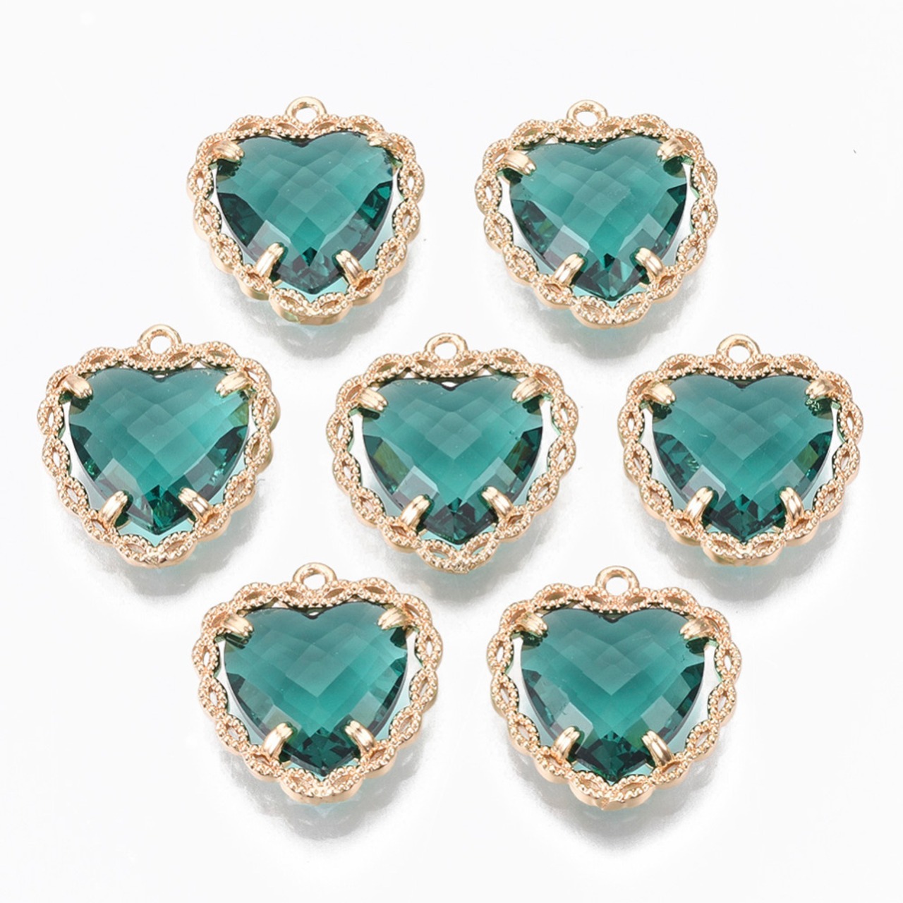 【値下げ在庫限り】真鍮 ハート 多面カット ガラス チャーム 1個