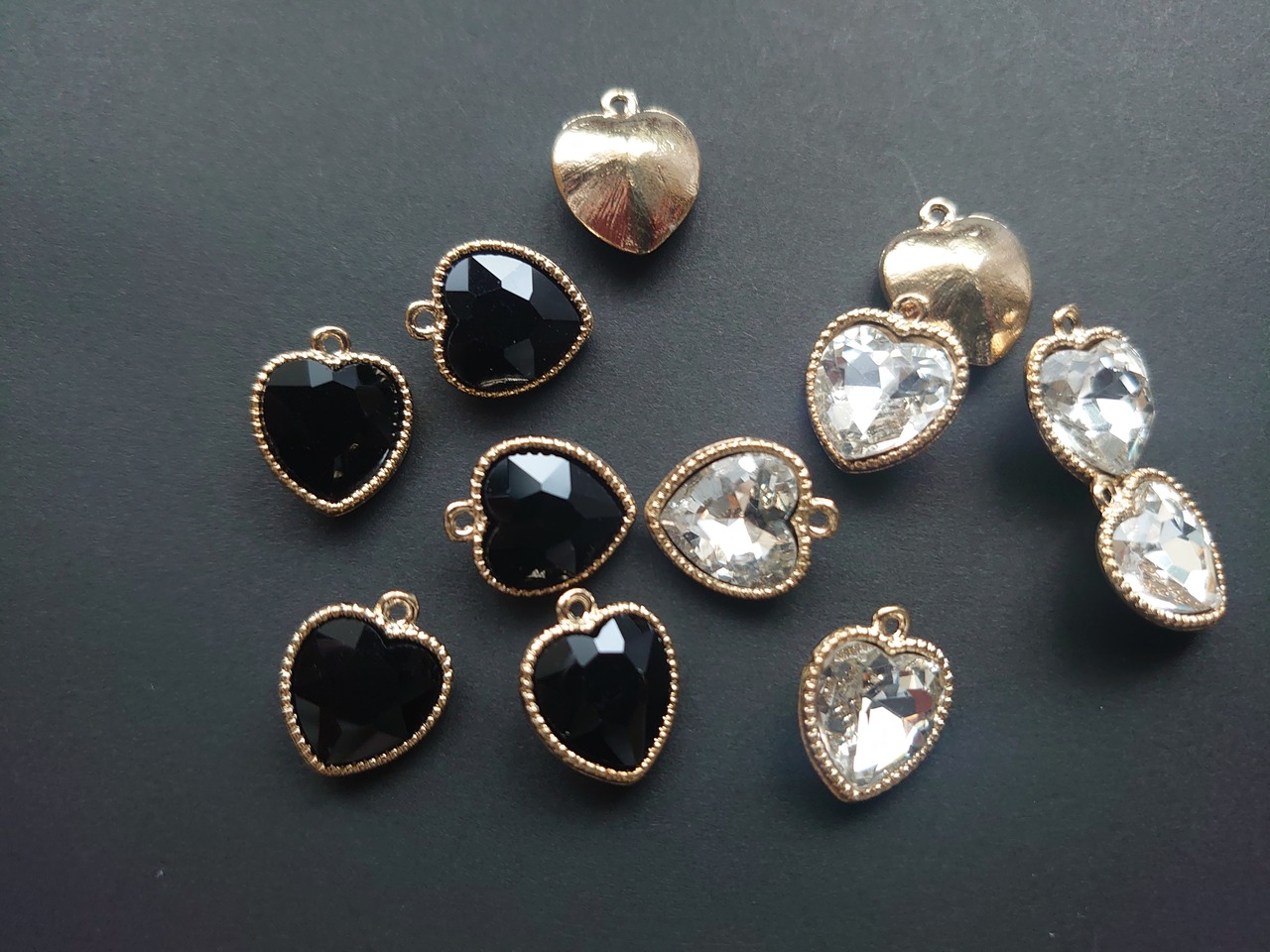 【値下げ在庫限り】合金 ガラス ハートチャーム 1個
