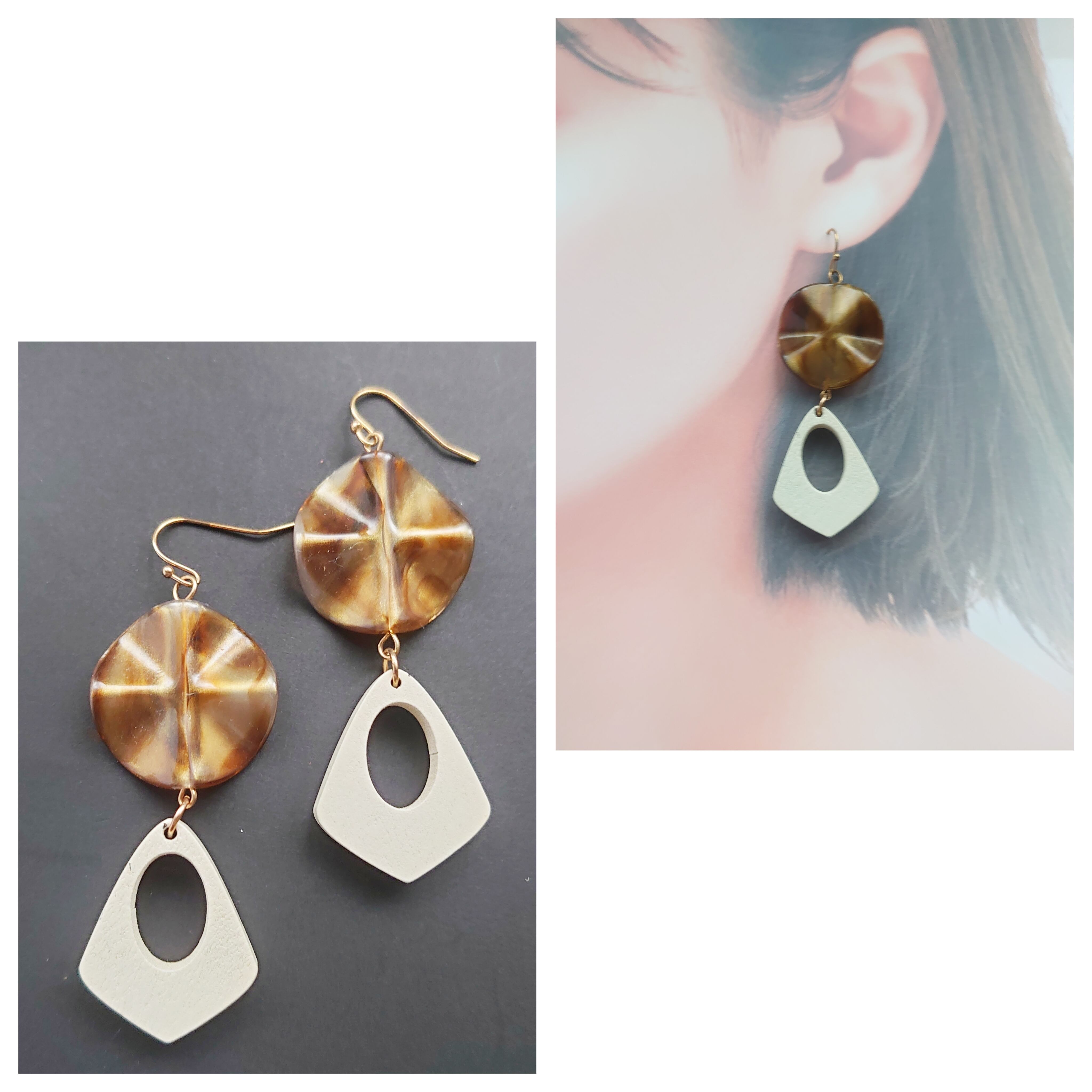 半額以下セール!ウッドしずく アクリルウェーブ フックピアス / PohonhandmadeJewelry