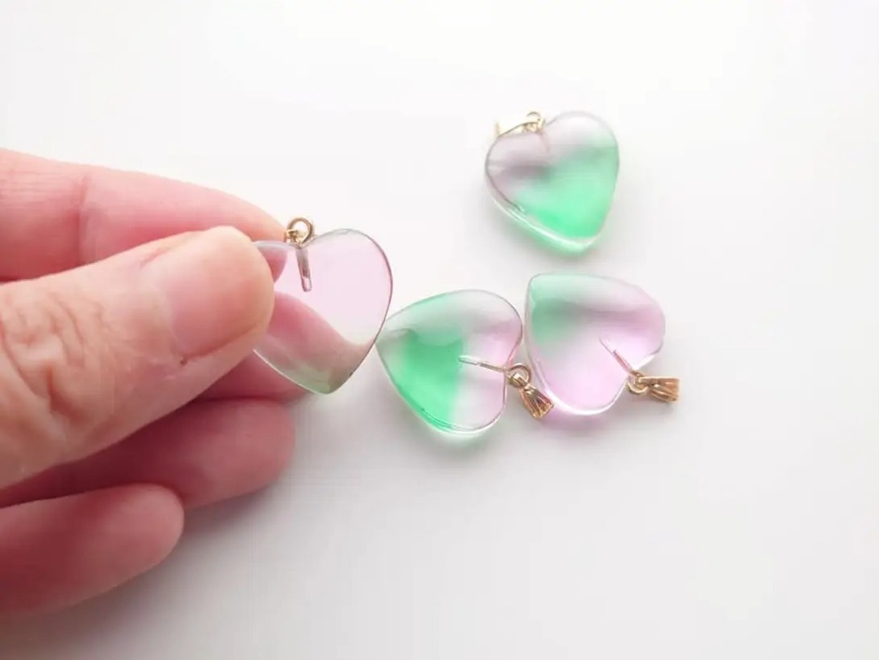 ガラス ハート グラデーション ツートン ペンダントトップ 1個 ミディアムシーグリーン