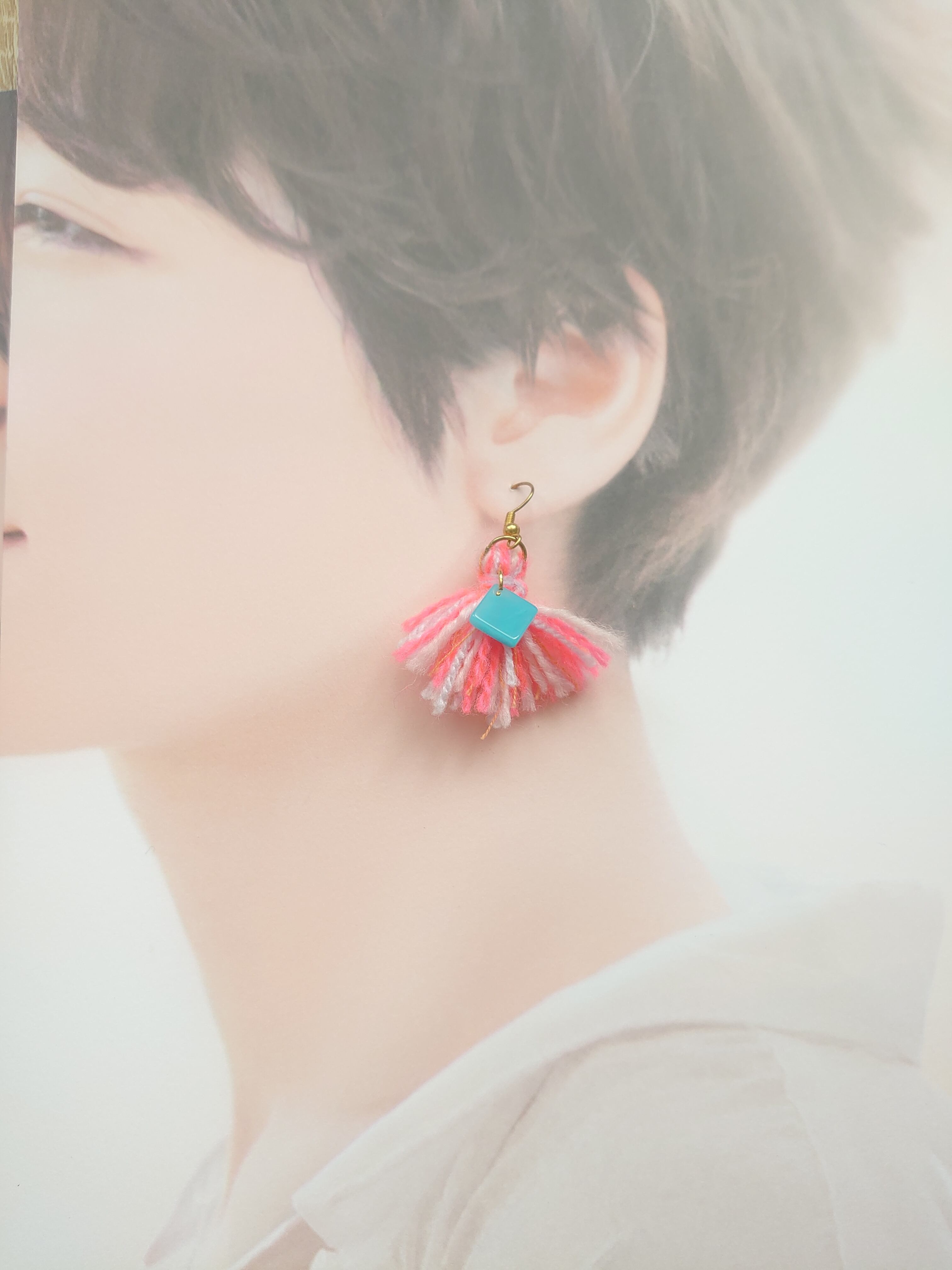 半額以下セール! 毛糸タッセル フックピアス / PohonhandmadeJewelry