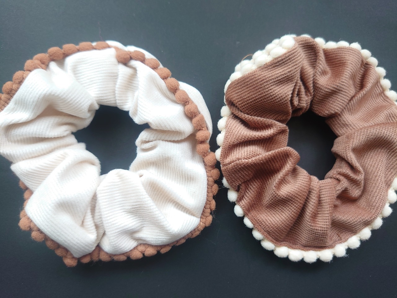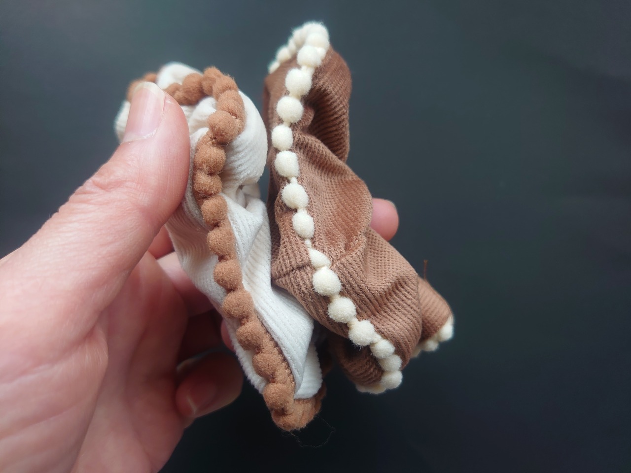 コーデュロイ ポンポン ブラウン ベージュ シュシュ ミックスカラー 1個