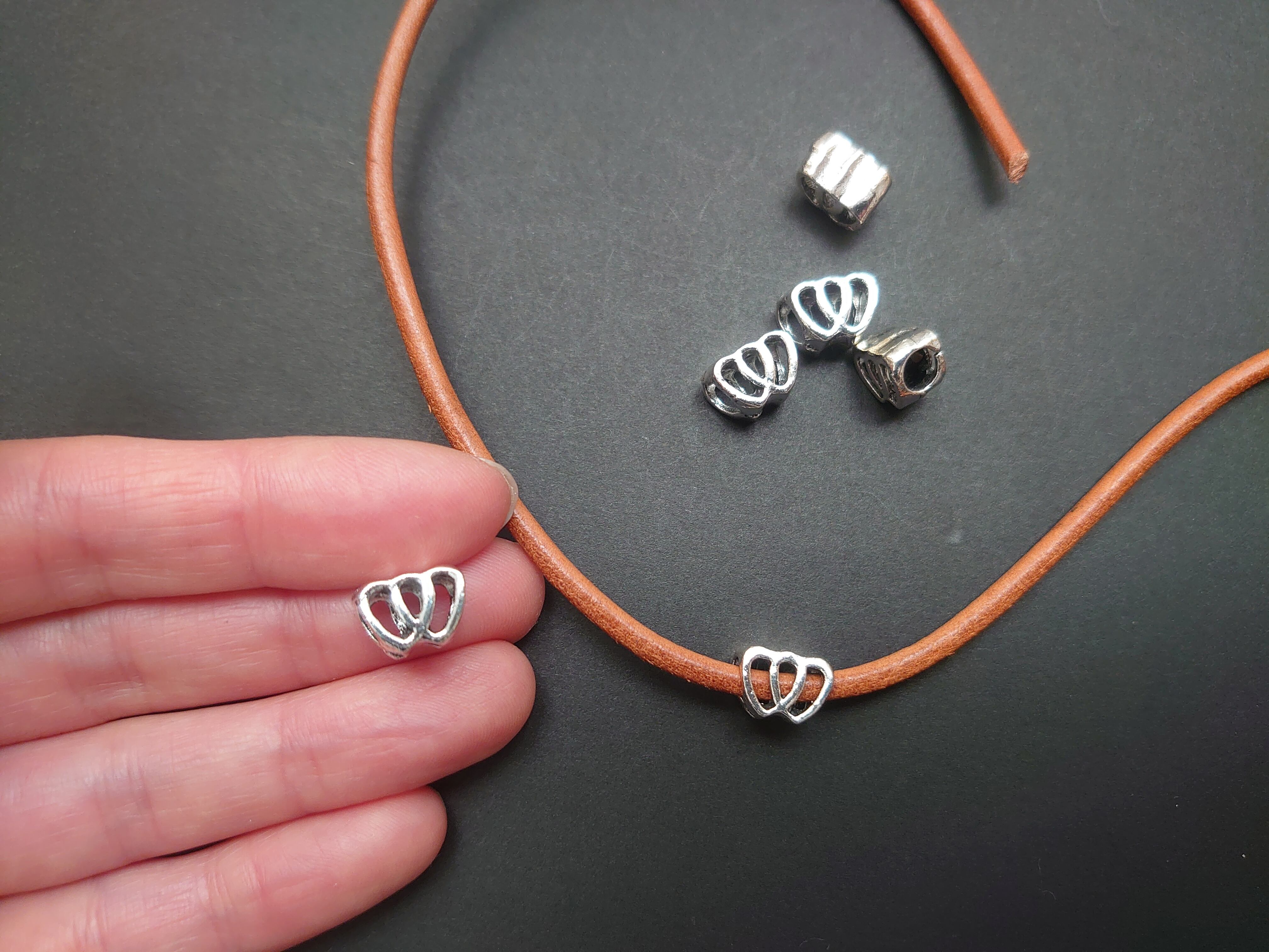合金 ダブルハート 穴大きめ ビーズ 2個