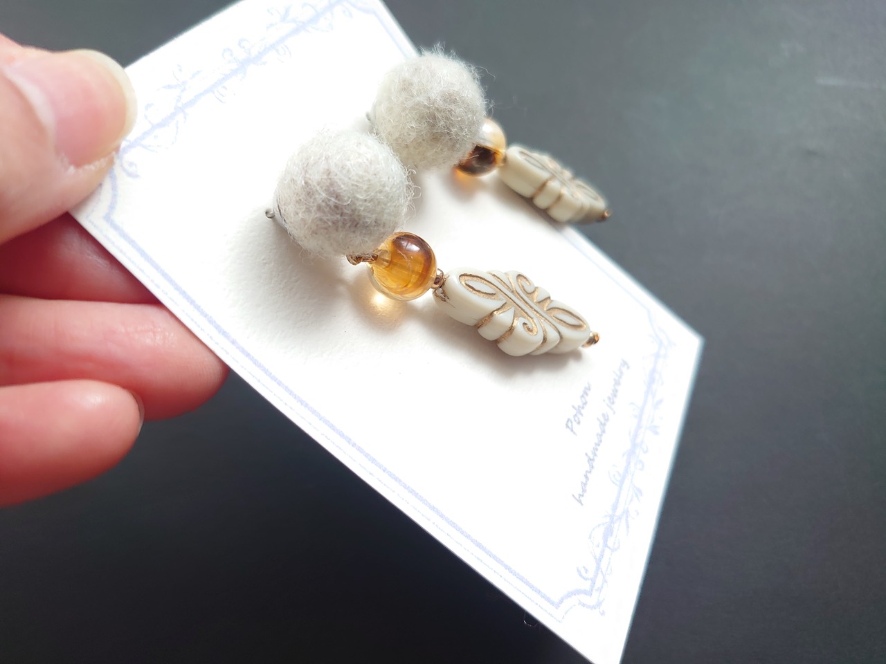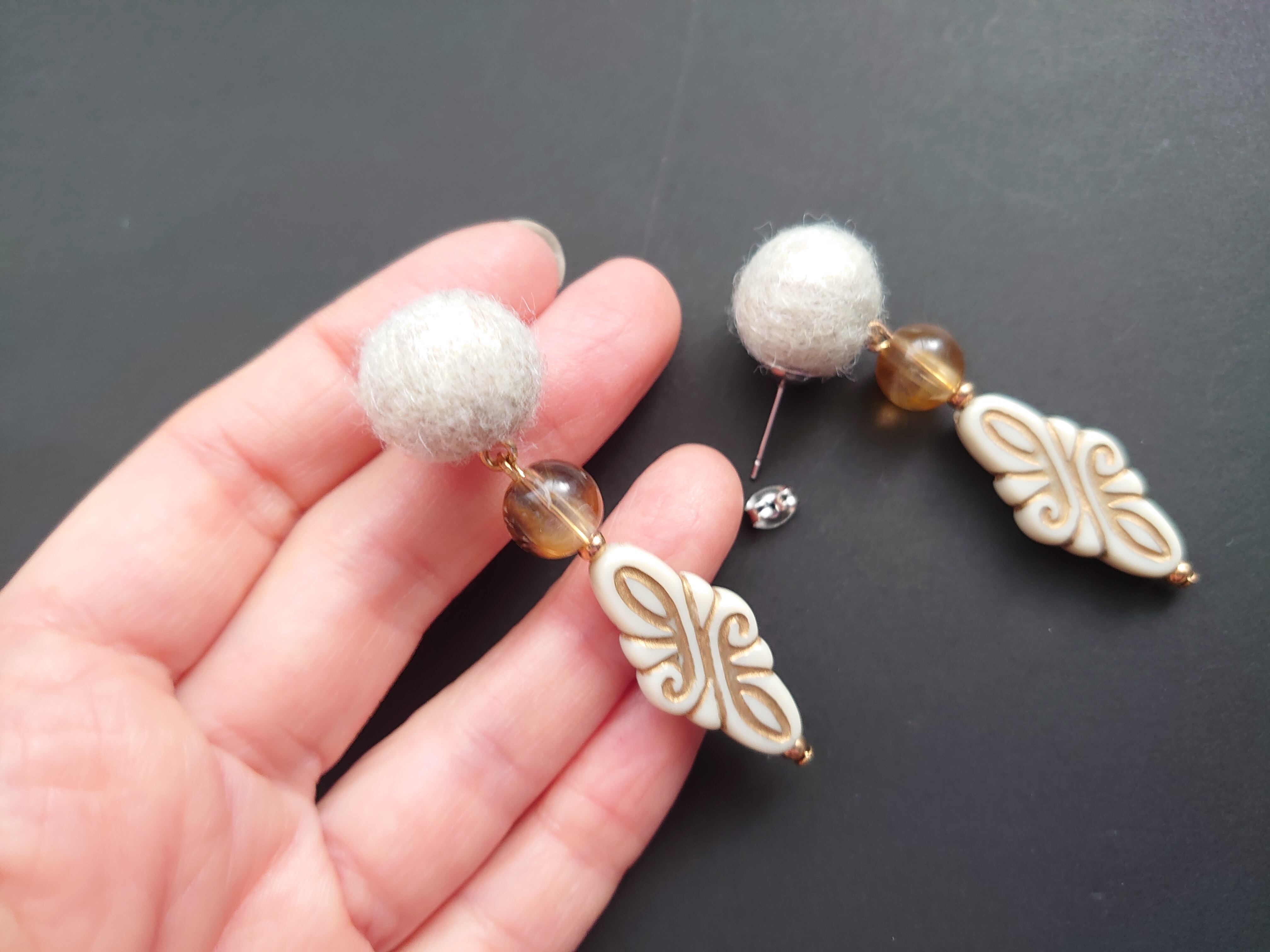 半額以下セール!SUS304 フェルト アンティーク調 ビーズ ピアス / PohonhandmadeJewelry