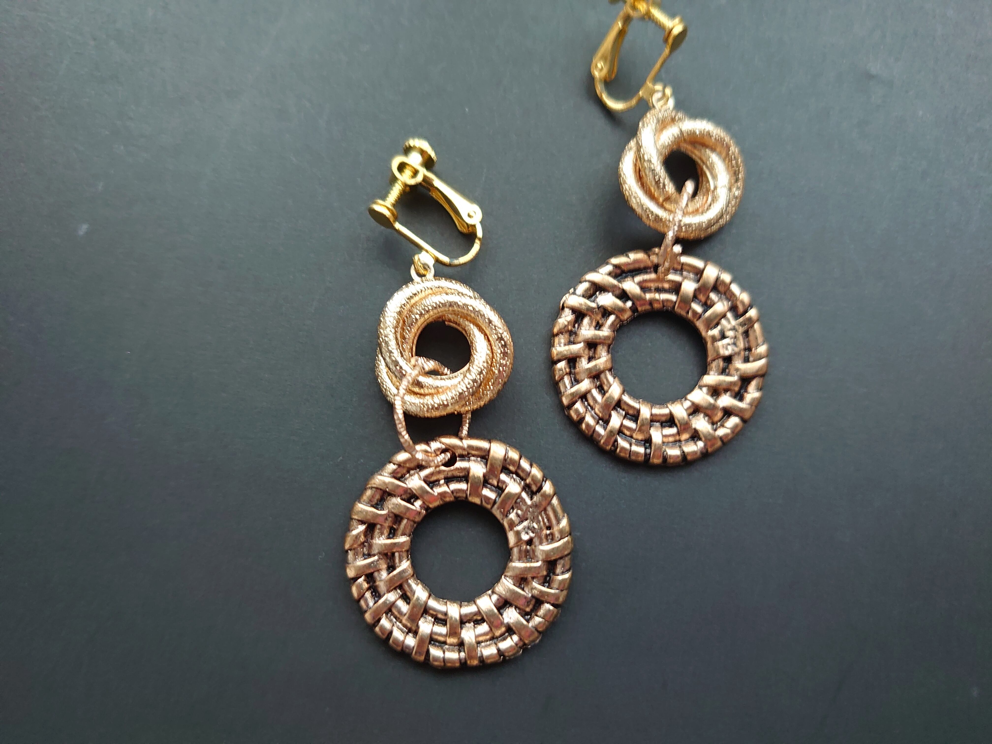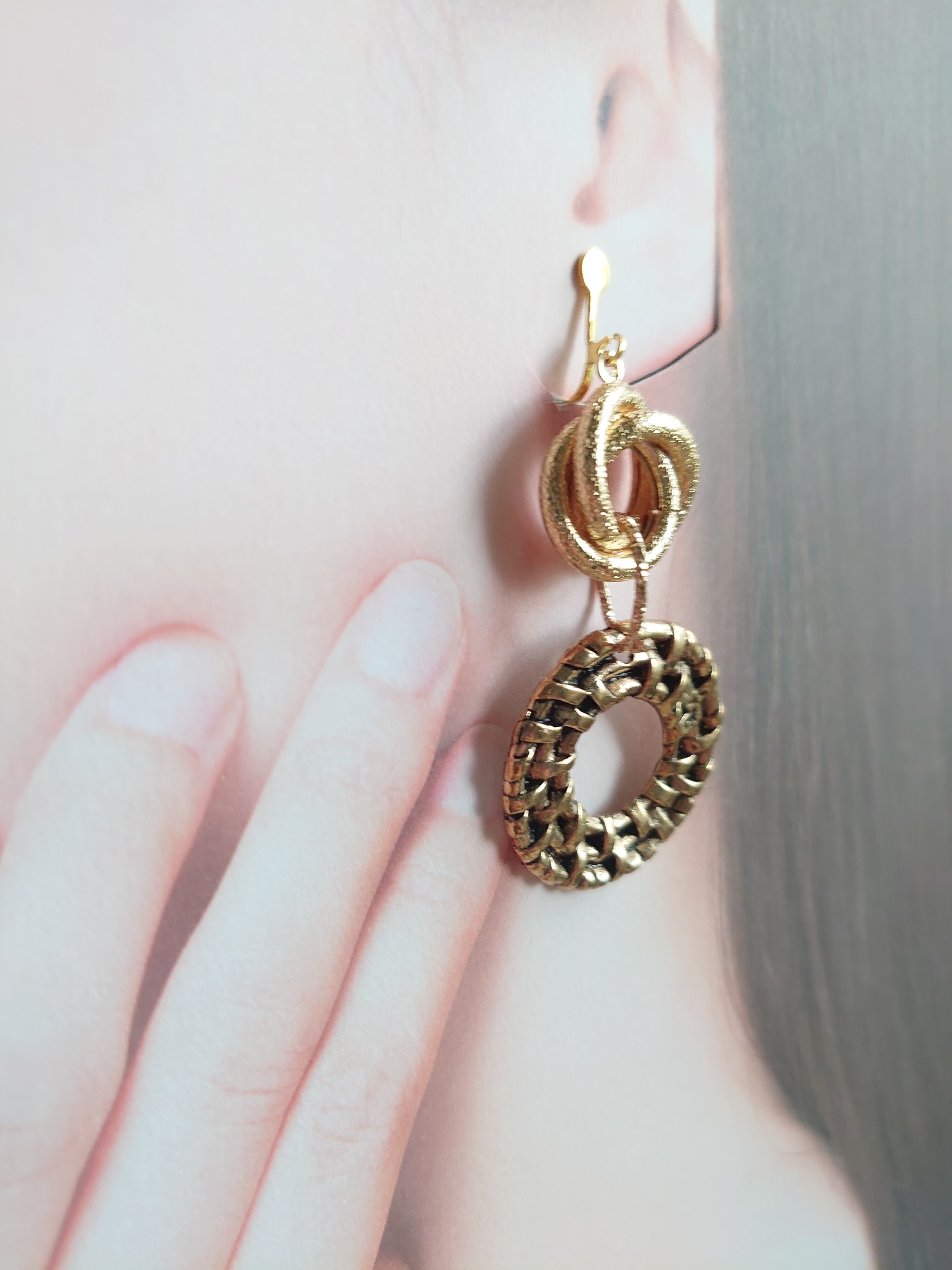 Ring イヤリング/ 重なりラウンド 編み [F-168]momoruka