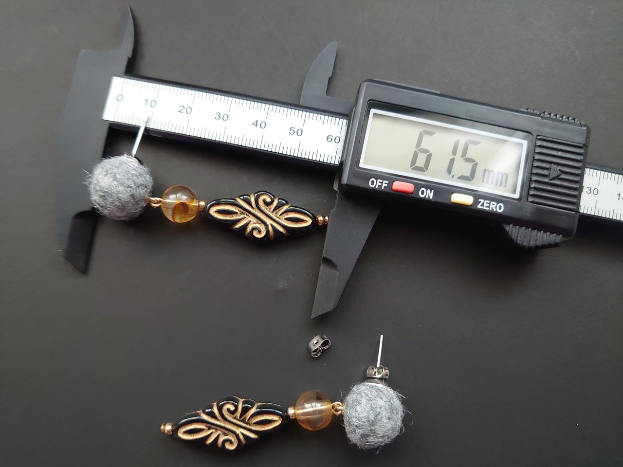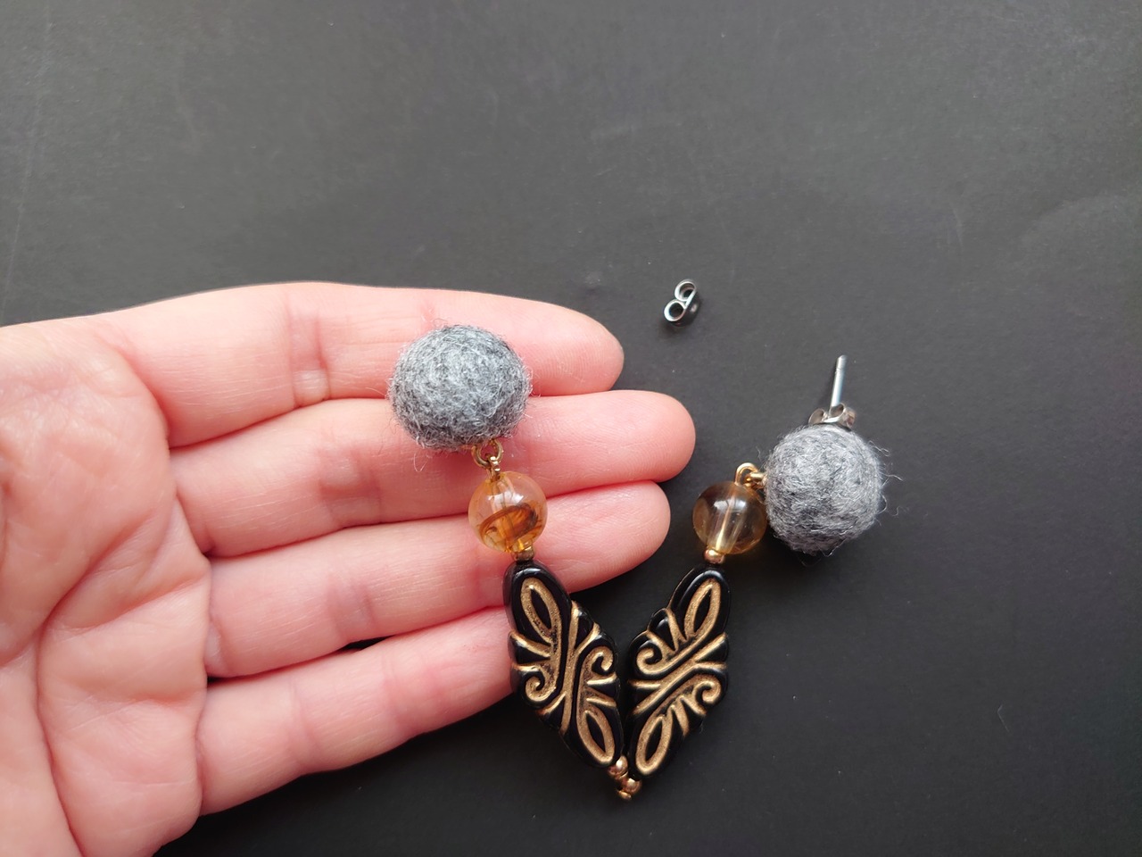 半額以下セール!SUS304 フェルトグレー アンティーク調 ビーズ ブラック ピアス / PohonhandmadeJewelry