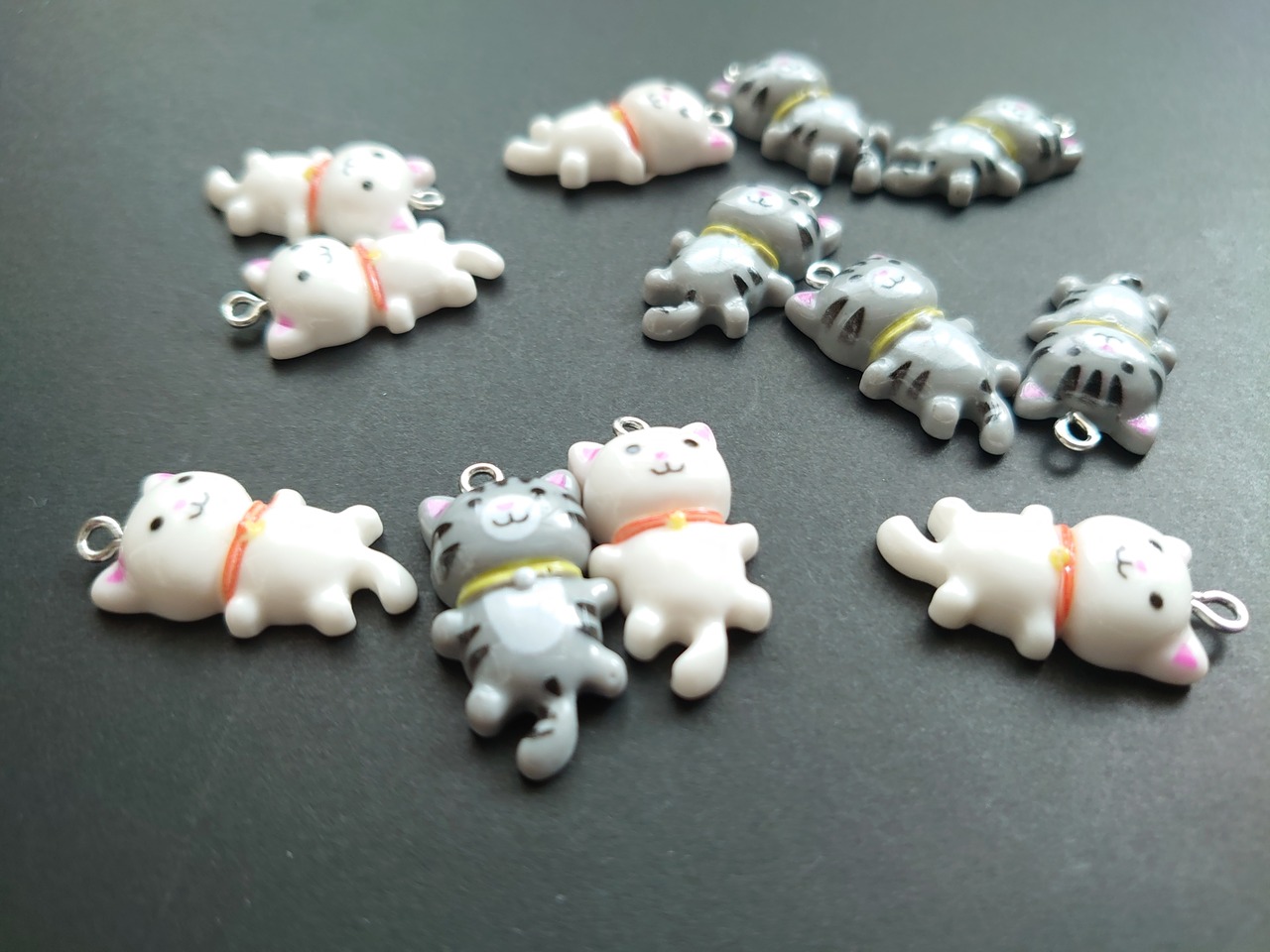 樹脂 猫チャーム ホワイト グレー 1個ずつ