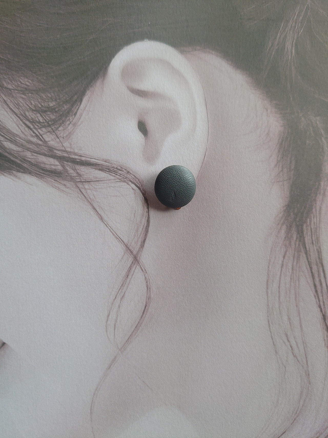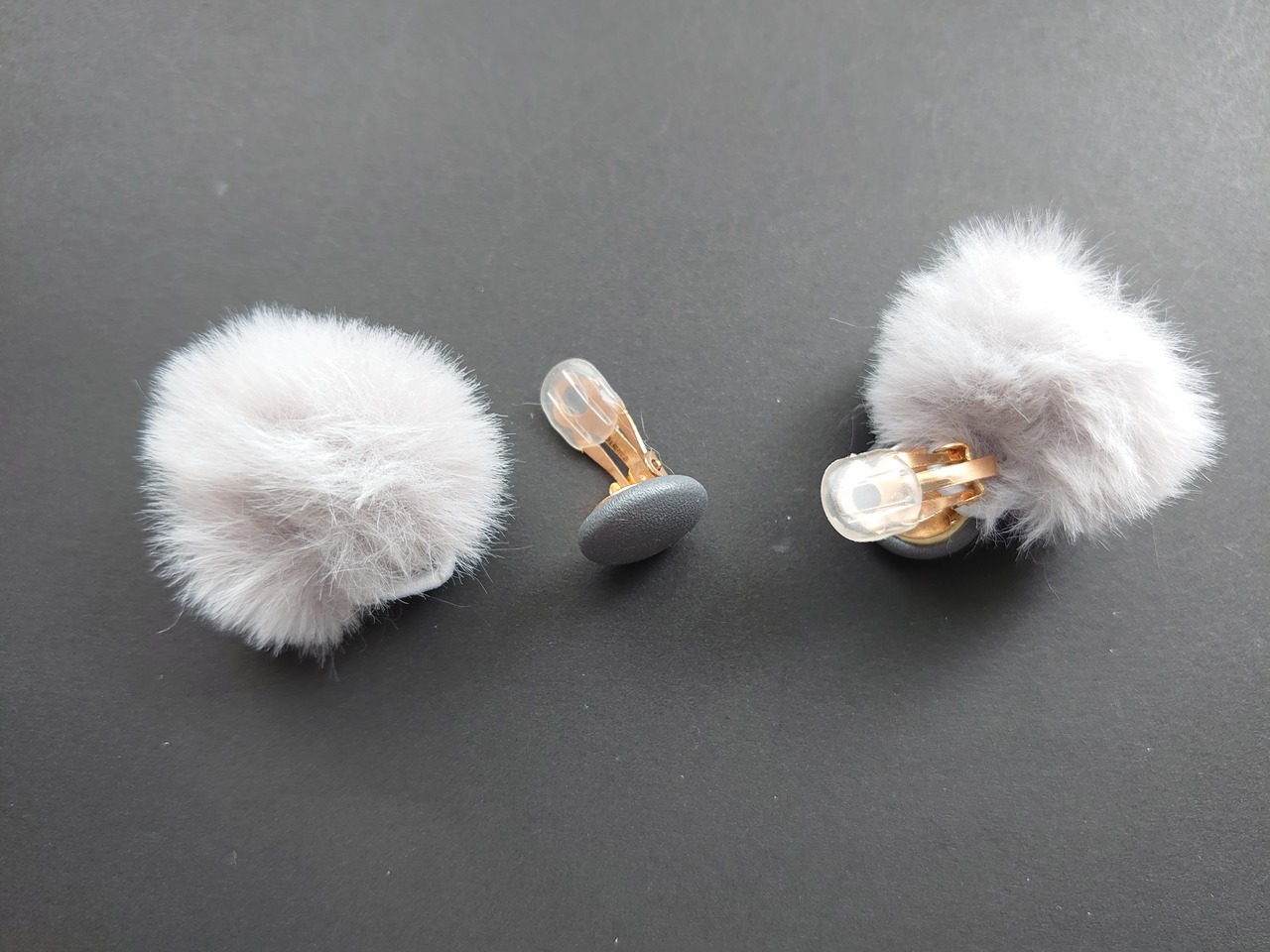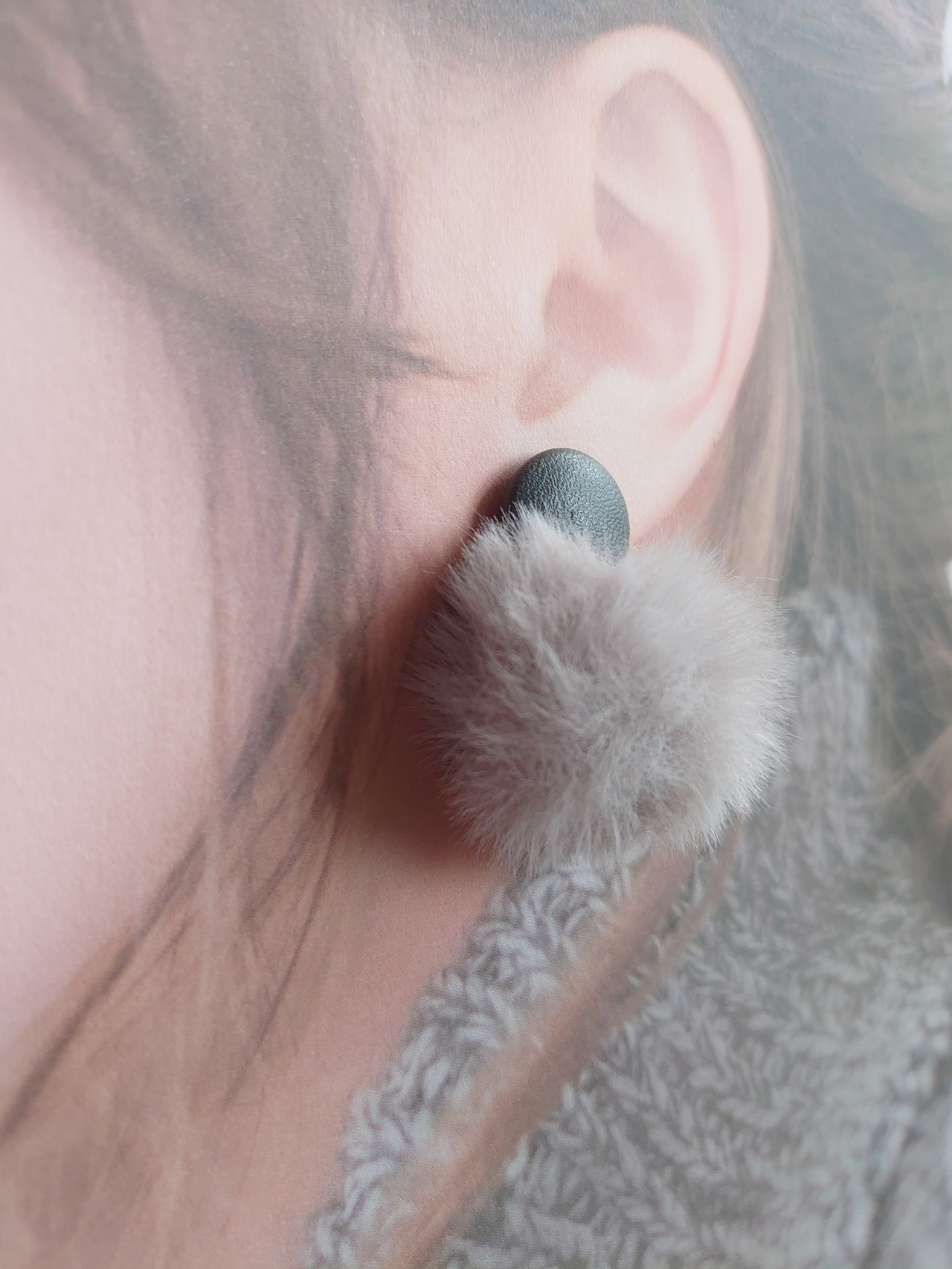半額以下セール! 2WAY 合皮ボタン エコファー グレー イヤリング/ PohonhandmadeJewelry