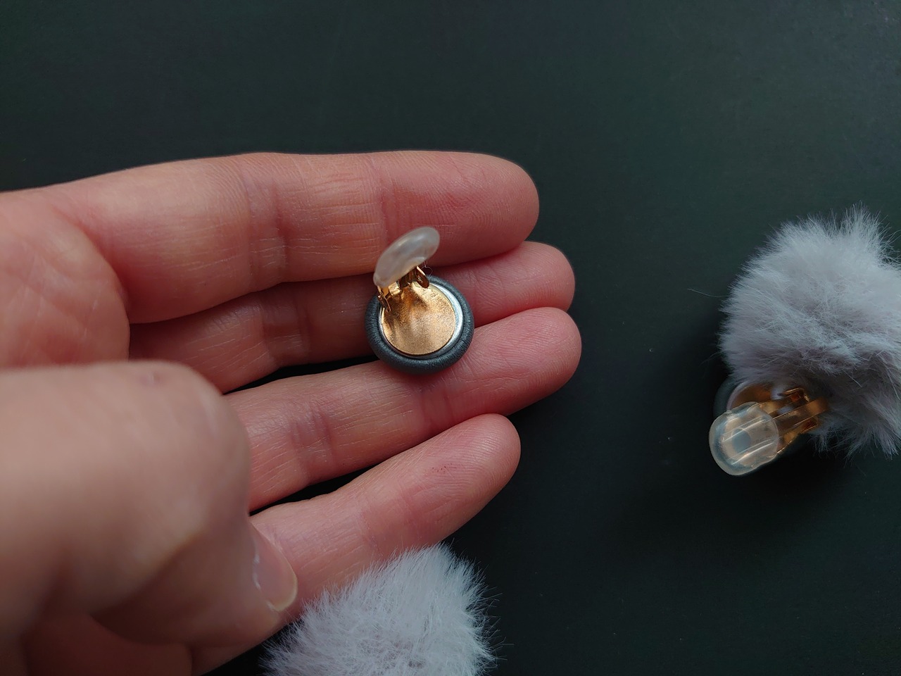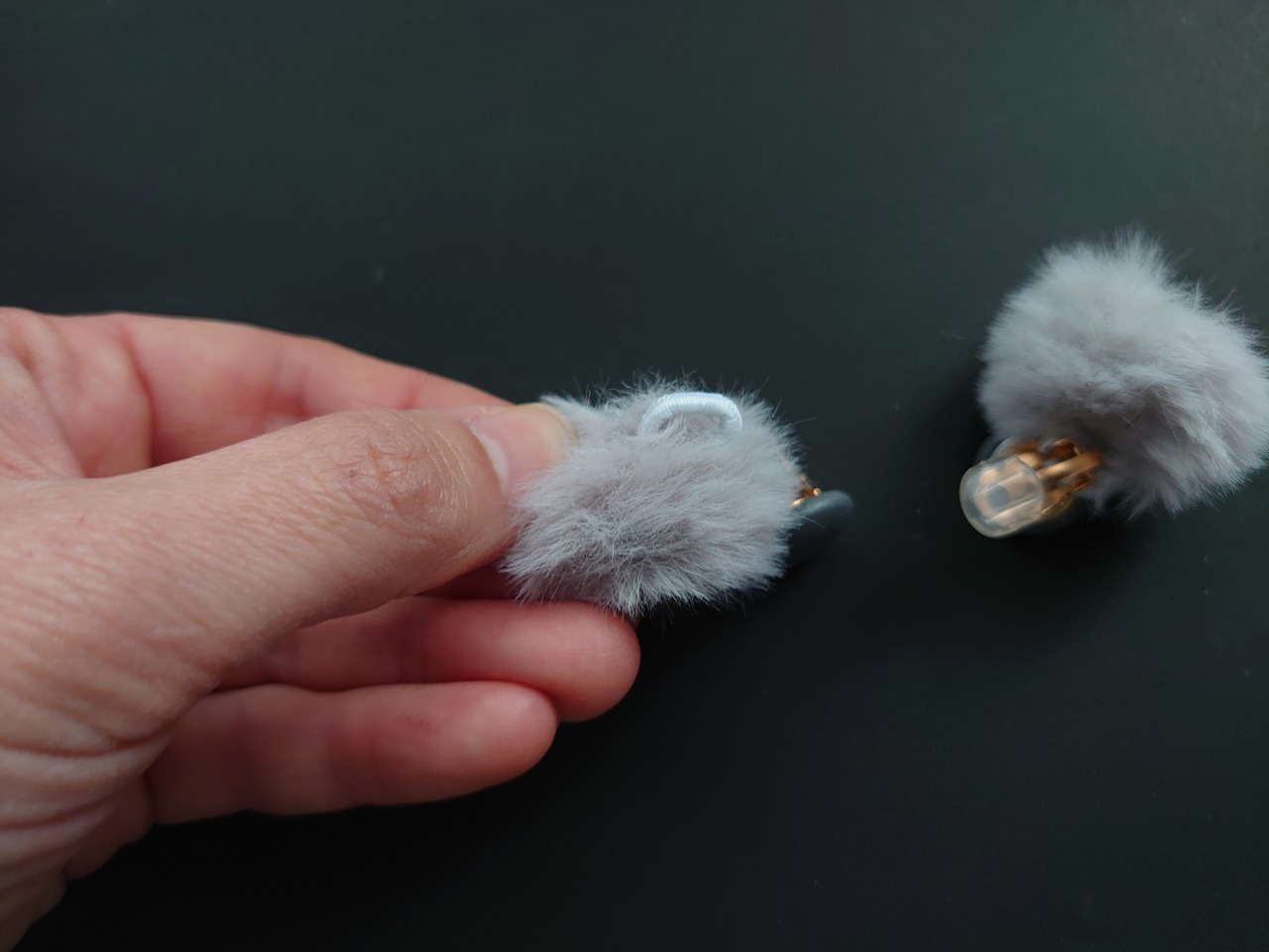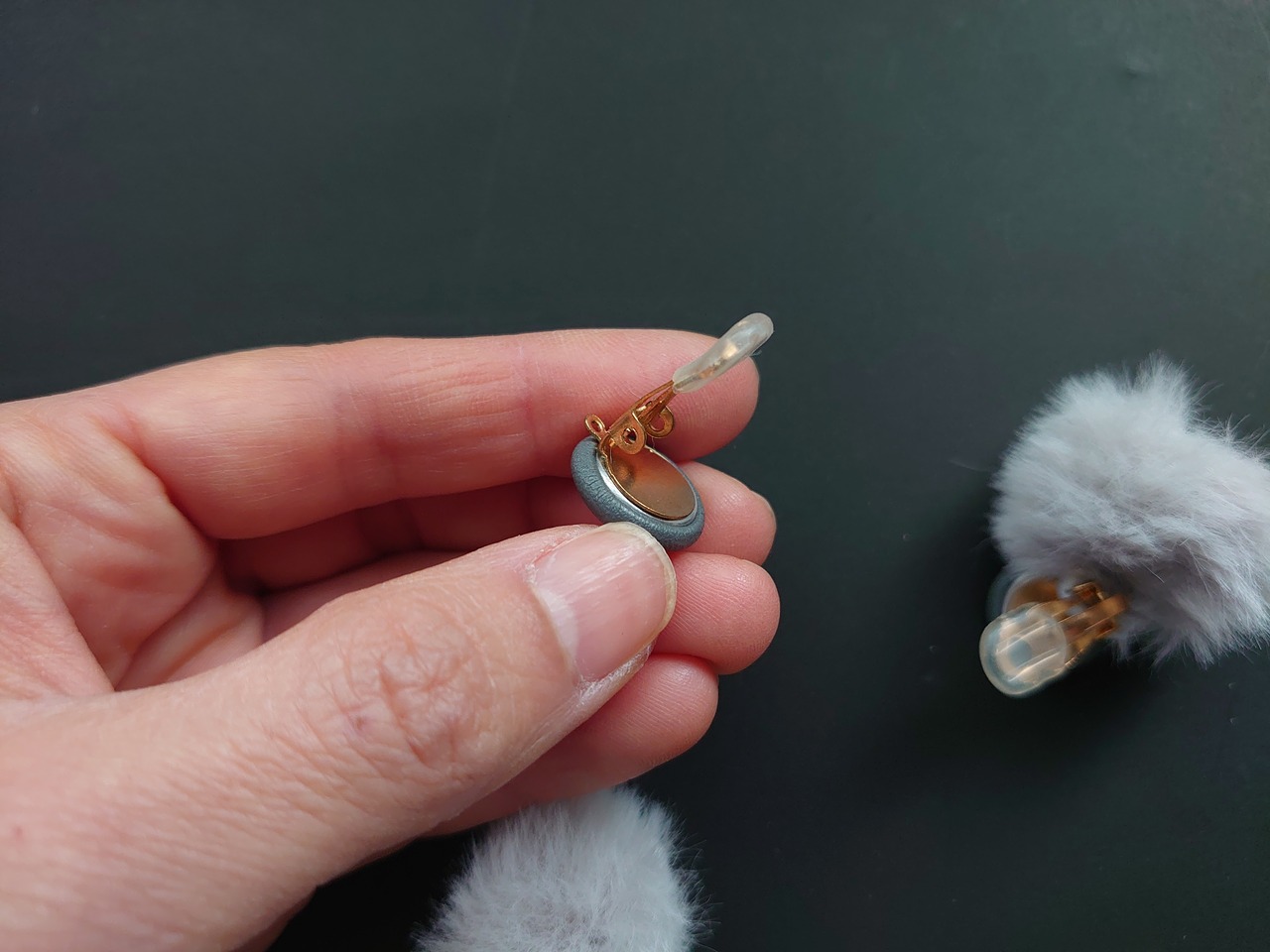 半額以下セール! 2WAY 合皮ボタン エコファー グレー イヤリング/ PohonhandmadeJewelry